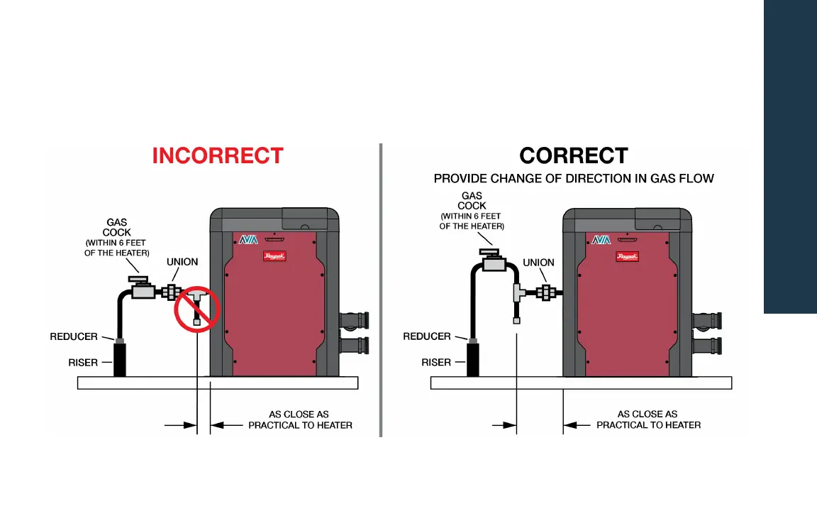 Raypak AVIA 264 - Gas Line Sediment Trap; INCORRECT installation; CORRECT installation