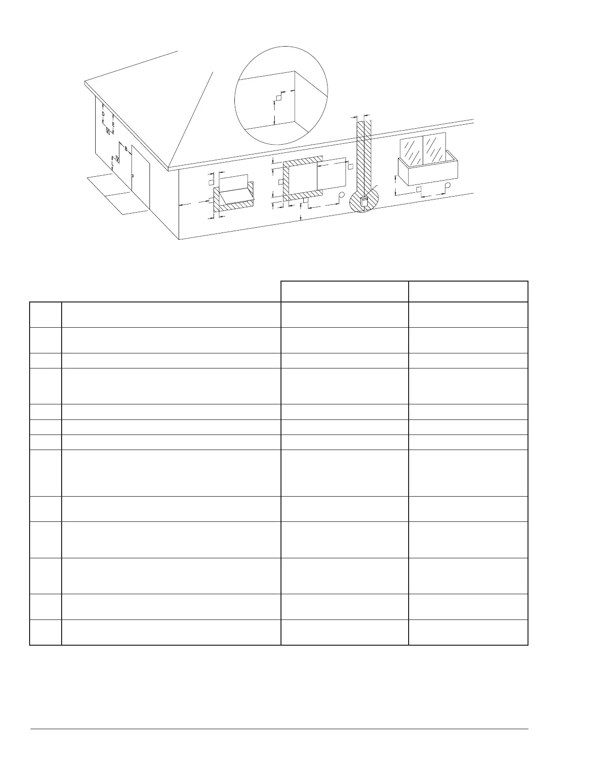 Figure 3. Dégagements minimum aux matières combustibles, terminaisons d’apport d’air et d’évacuation