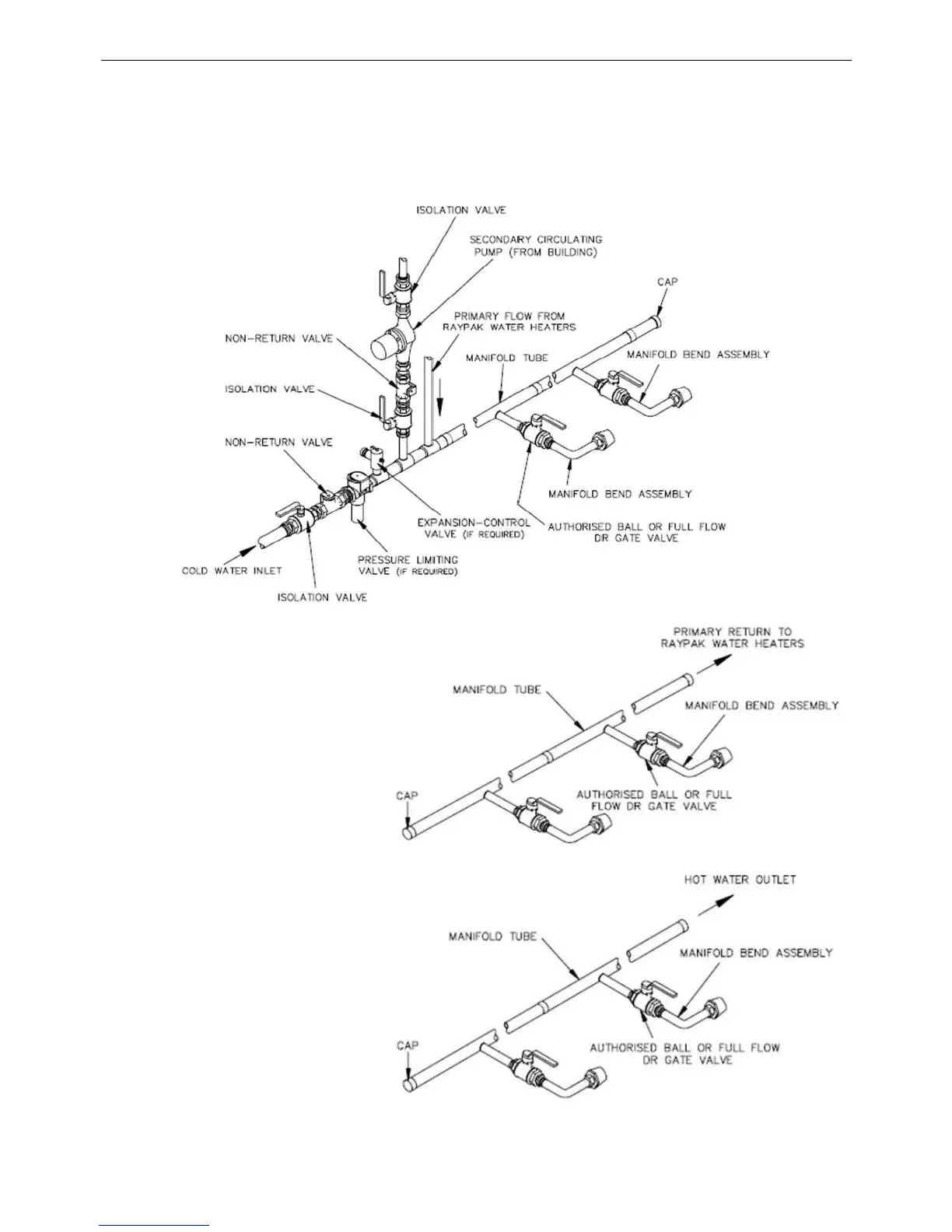 1. The cold water manifold (cold header assembly) must be designed to balance the flow to each unit i.e.