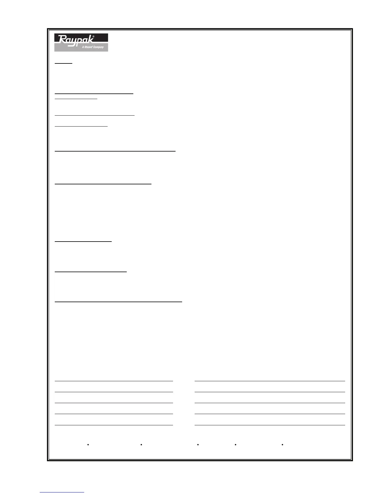 RAYPAK, INC 2151 Eastman Avenue Oxnard, CA 93030-978 6 (805) 278-5300 Fax (800) 872-9725 www.raypak.com