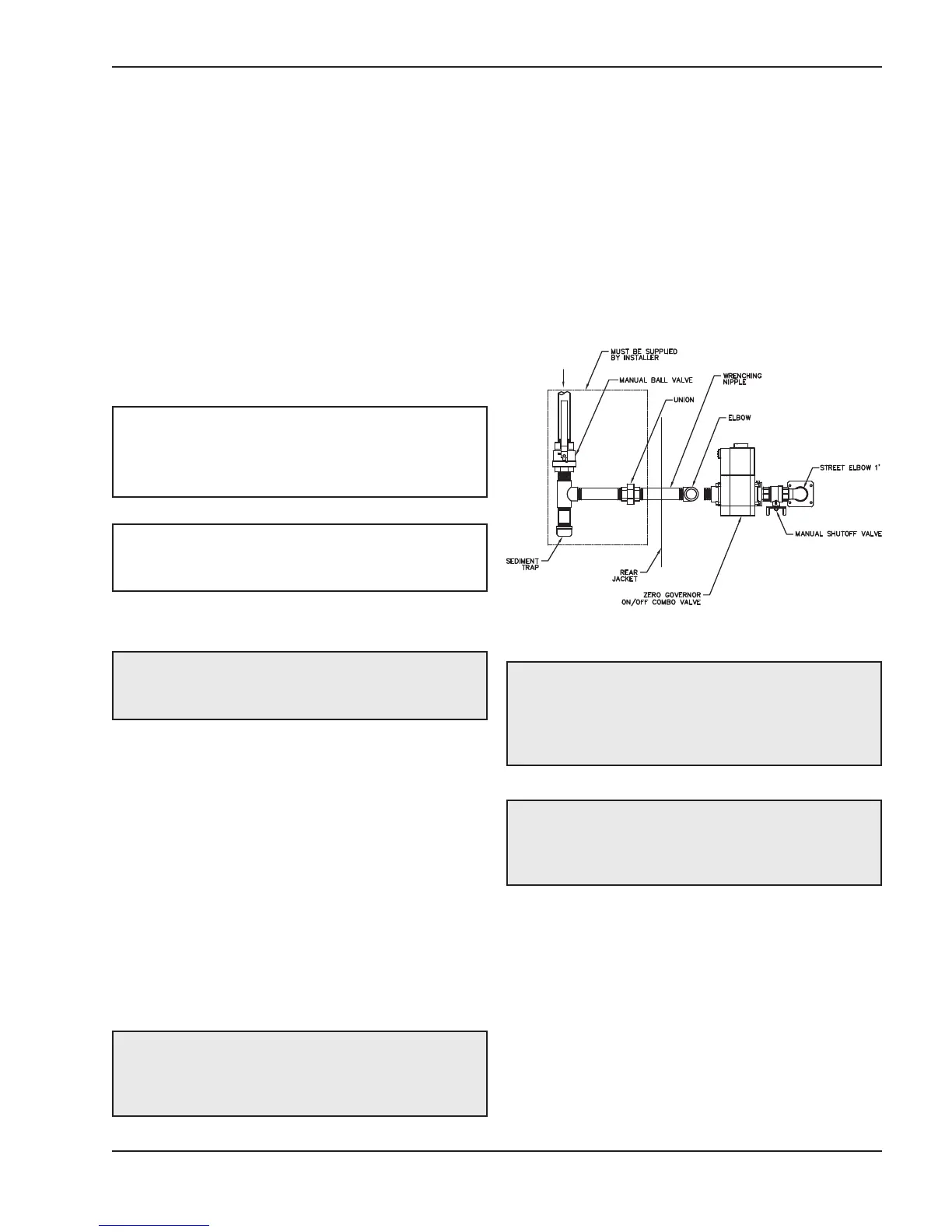 heater gas controls, and a manual shut-off valve lo-