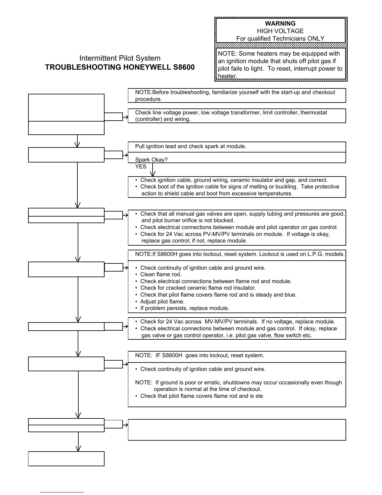 NOTE:If S8600H goes into lockout, reset system. Lockout is used on L.P.G. models.
