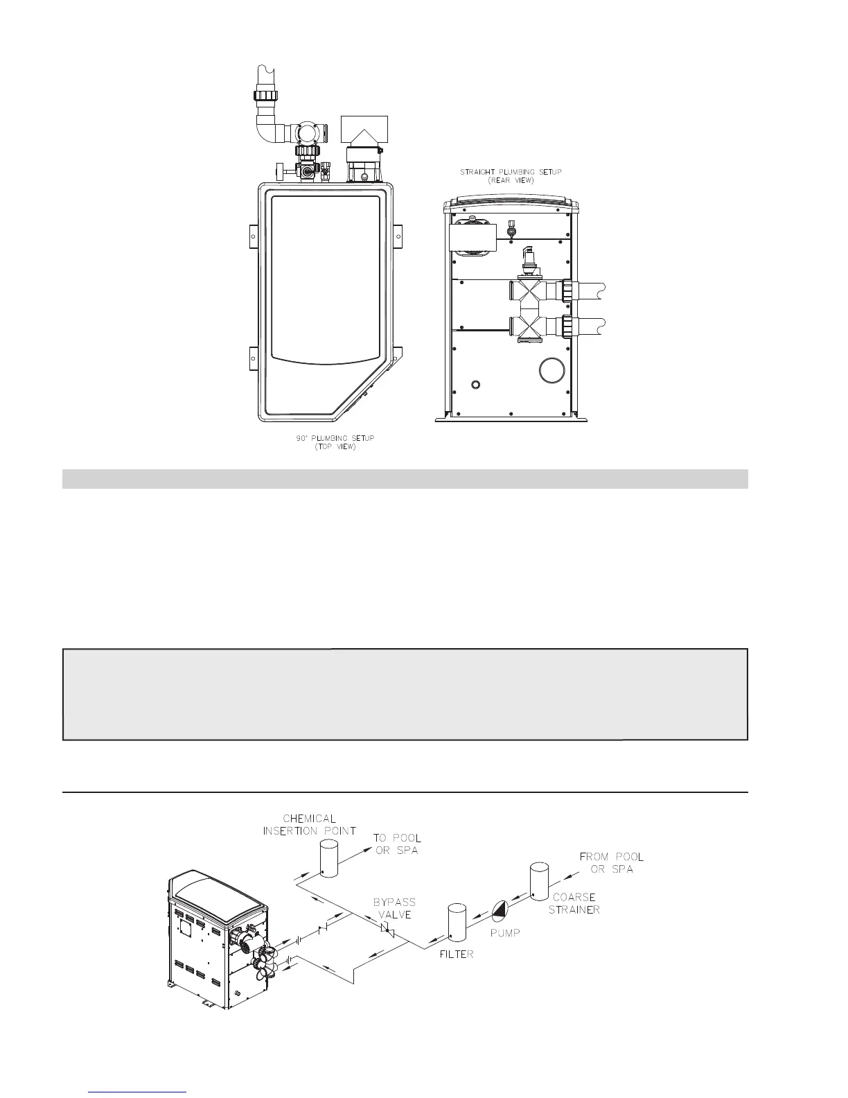 plumbed in series (Salt generators and chemical feeders must be down stream of the pool heater).