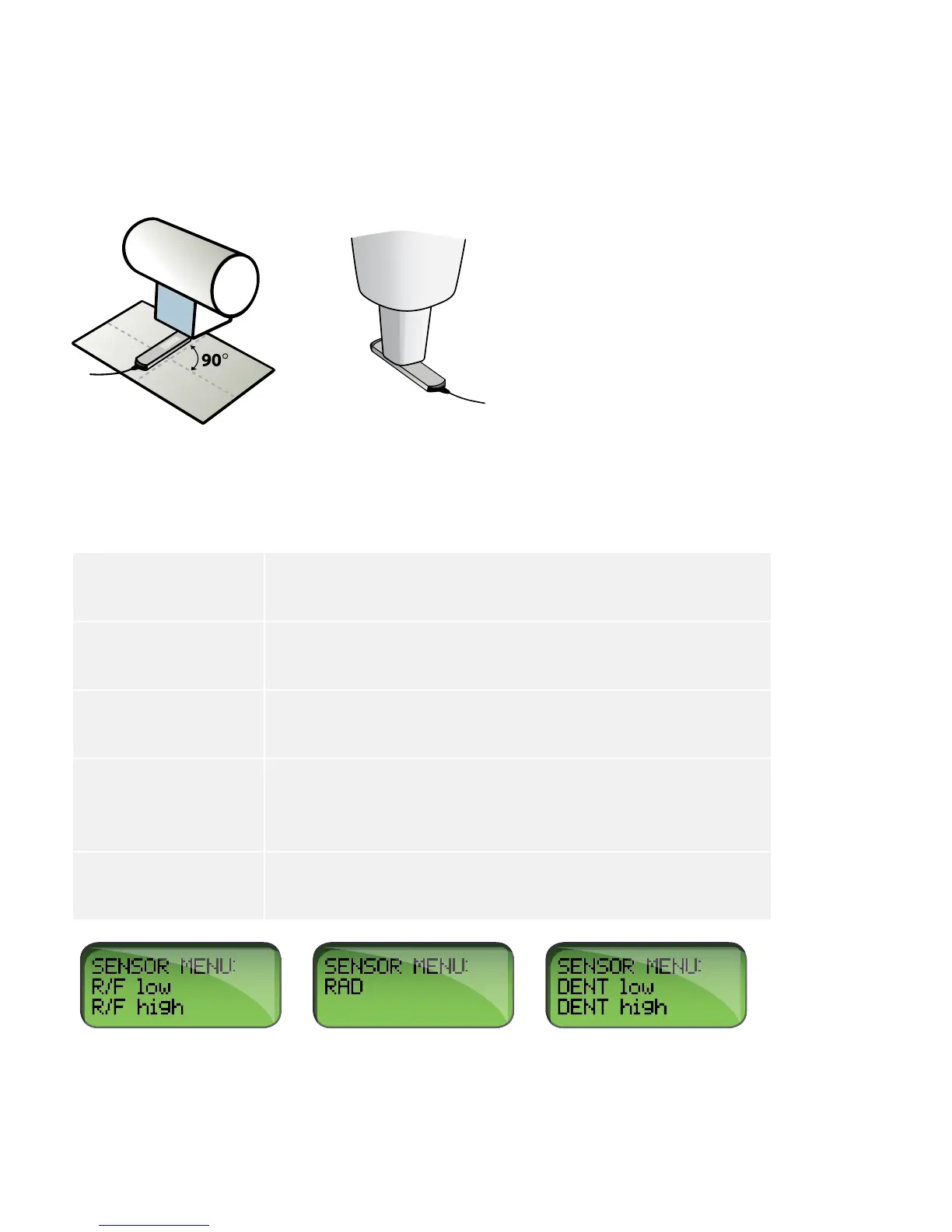 For best accuracy, center the selected sensor field (R/F low, R/F high, RAD, DENT low or DENT high) and