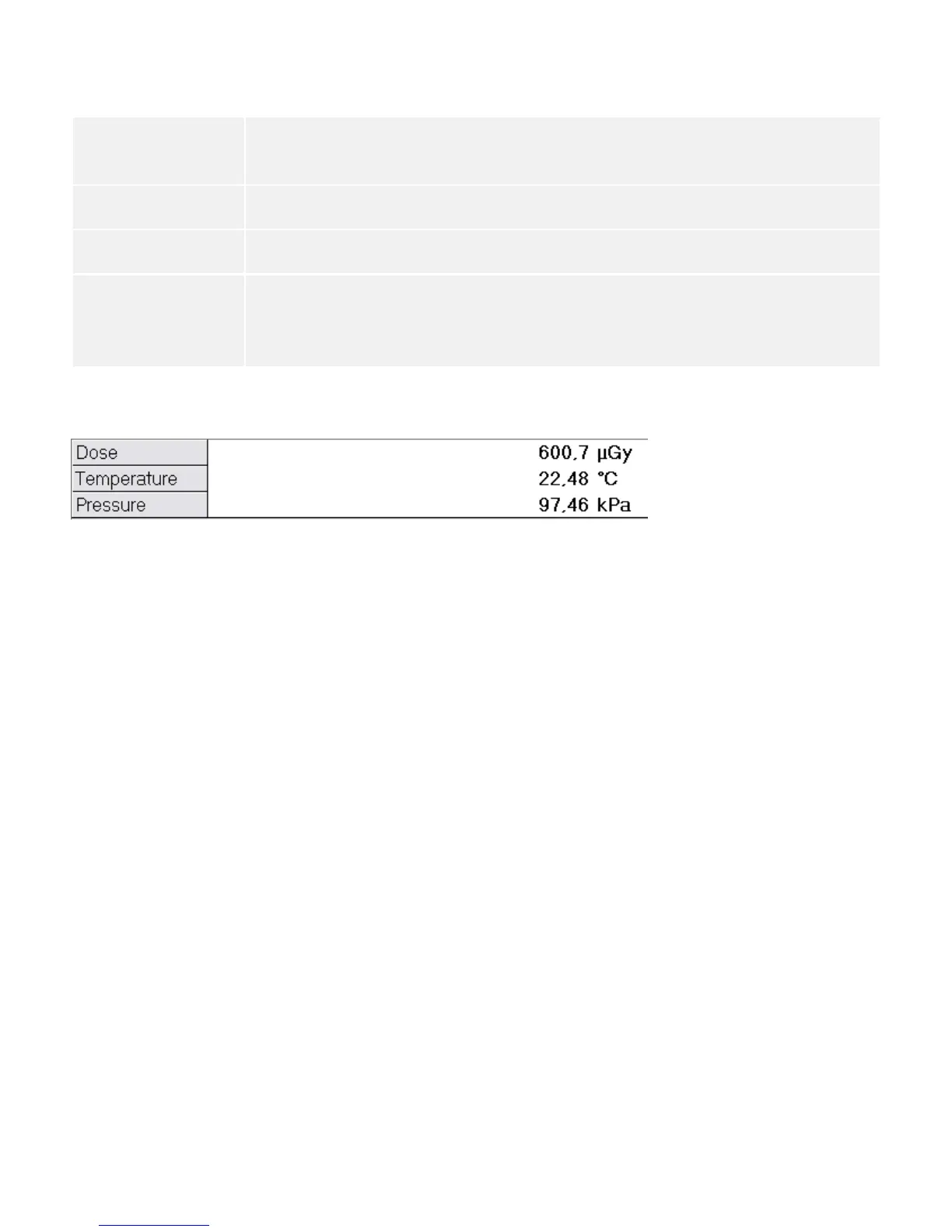 unit. (Dose: Gy, Gycm, R or Rcm, Temperature: °F or °C, Pressure: kPa or mmHg)
