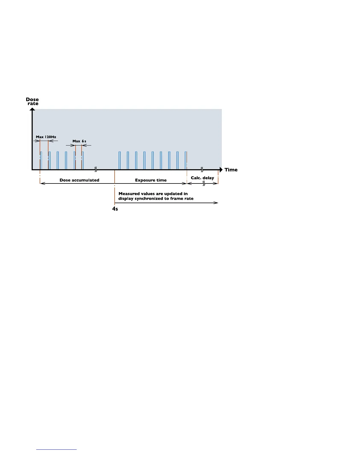After an exposure longer than 6 seconds, a dose rate value recorded approximately 2 seconds before end trig