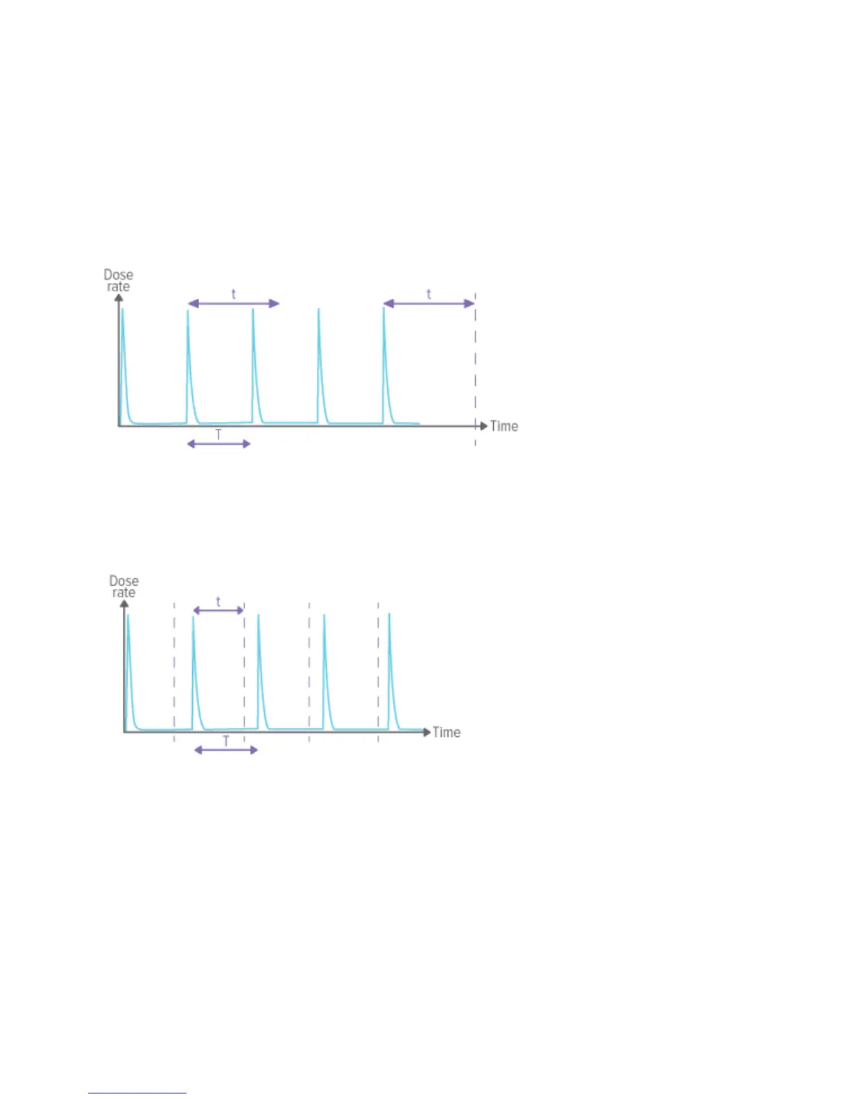 Stop delay setting (t) shorter than the time between pulses (t<T), will result in many short measurements (one for