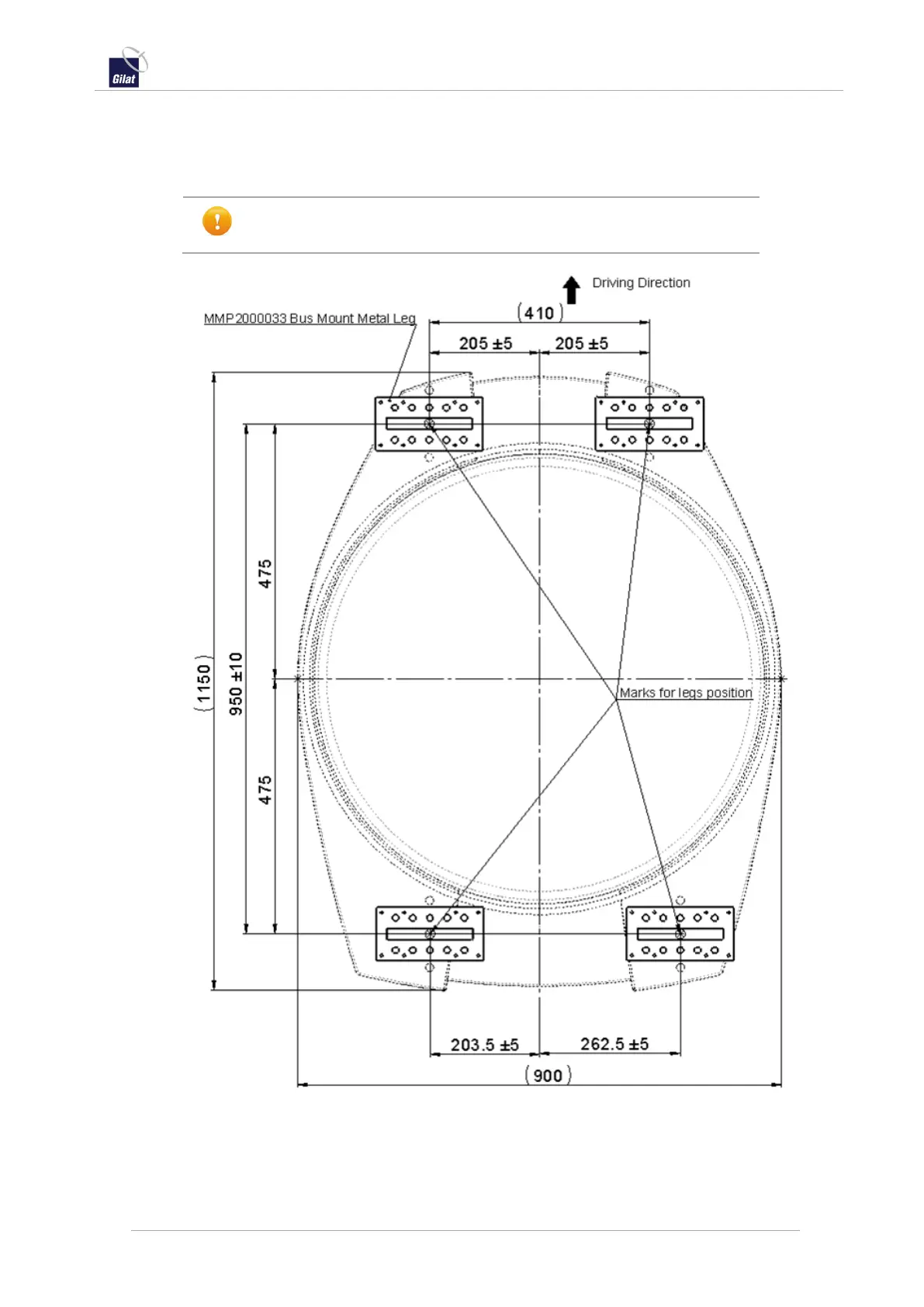 o Mark the center points of the metal legs on the roof. For the leg positions,
