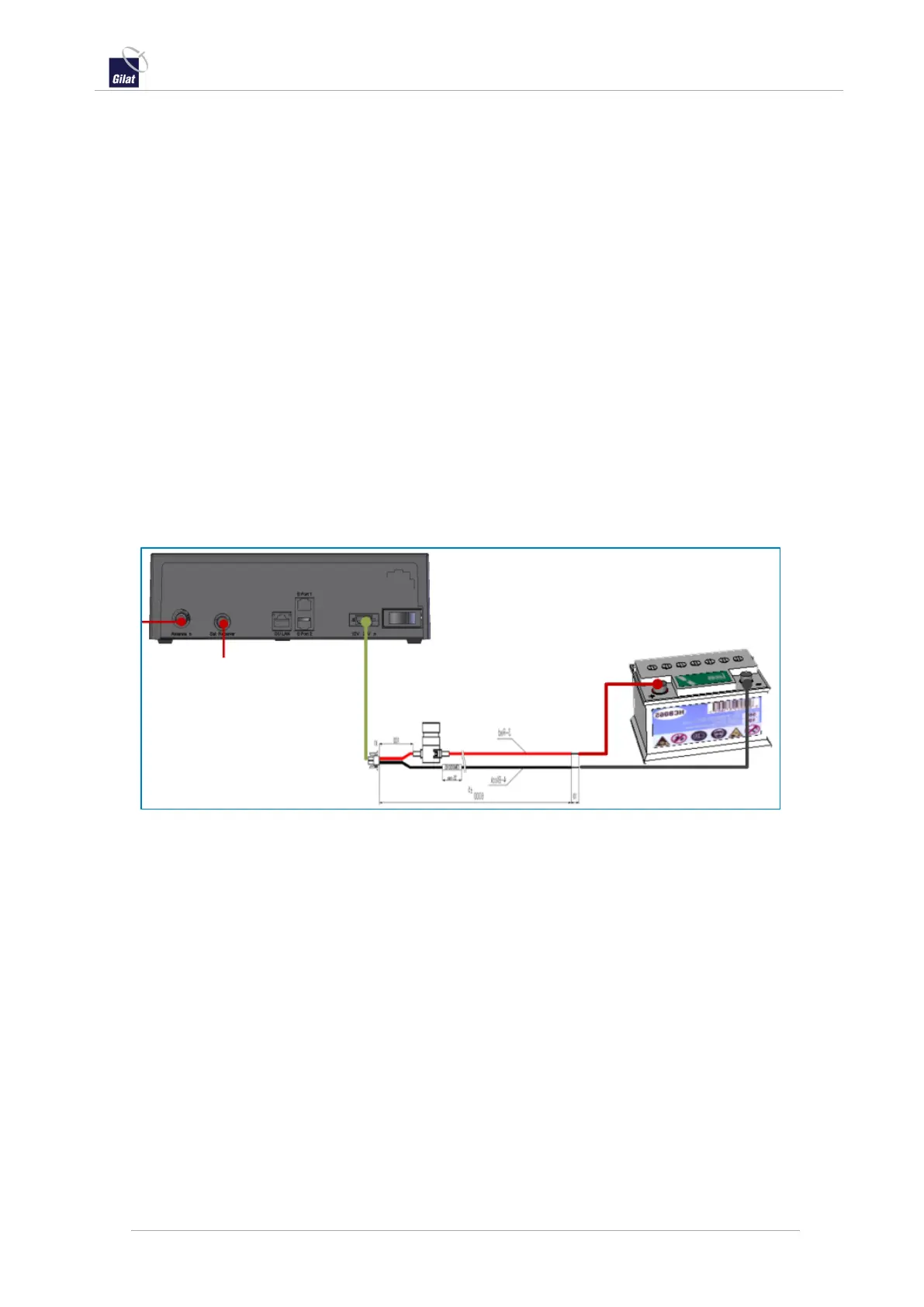 This picture shows the ACU 12-24VDC connection, with positive/negative leads