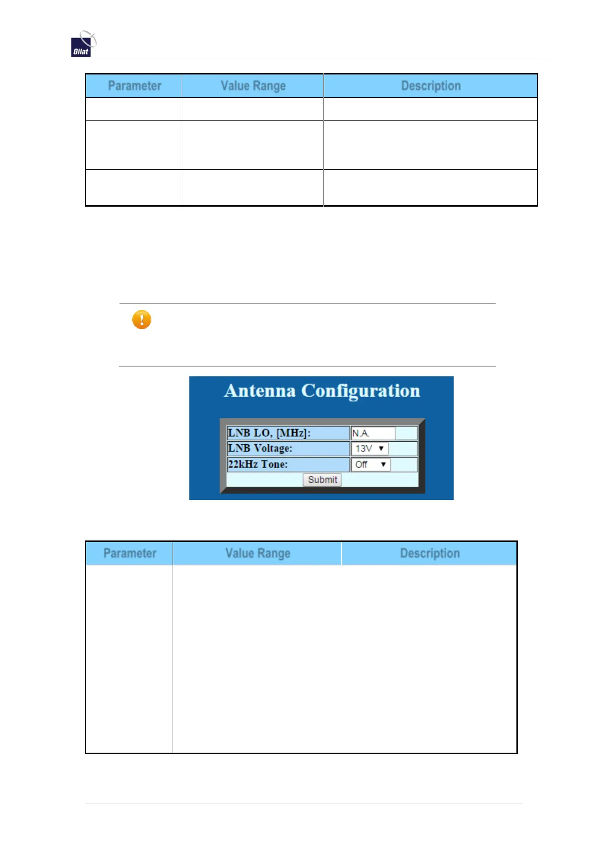 Table 18: ACU web interface - Antenna Configuration parameters