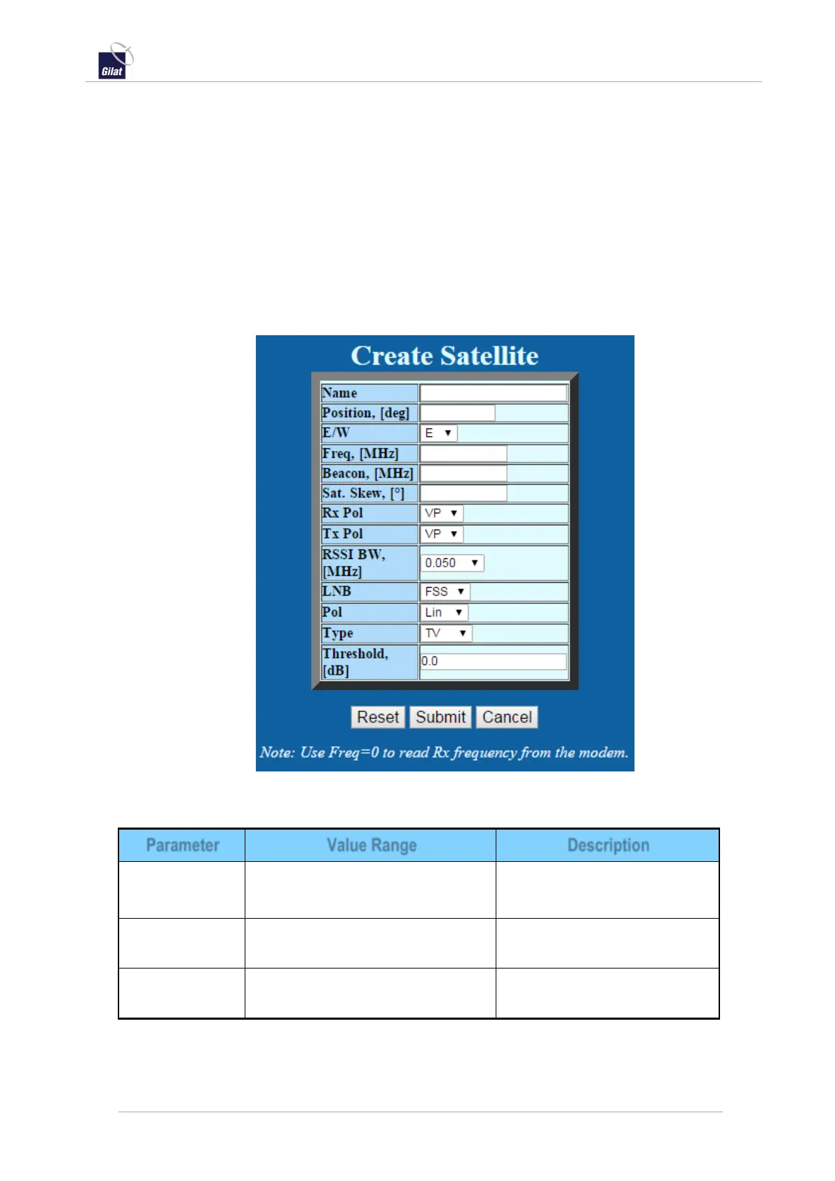 Table 19: ACU web interface - Satellite parameters