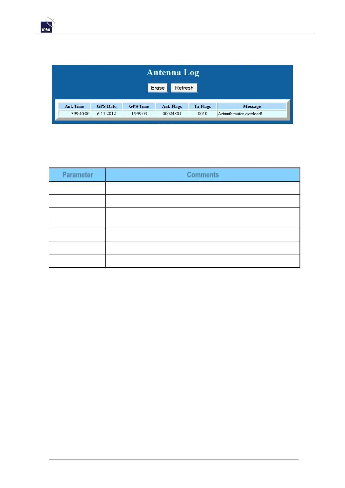 Table 25: ACU web interface – Antenna Log parameters