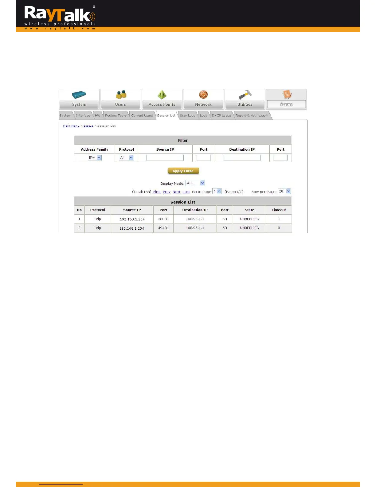 ThispageisusedtocheckthetraffichistoryoftheRayTalkRA‐696.