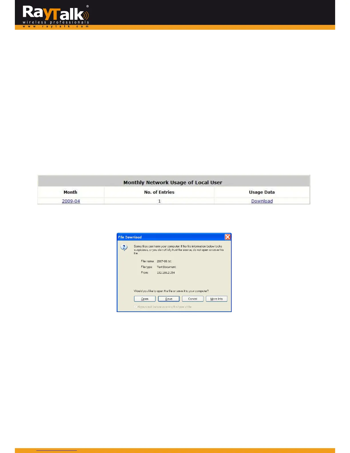 > DownloadMonthlyNetworkUsageofLocalUser:ClicktheDownloadbuttonforoutputtingthereportmanually