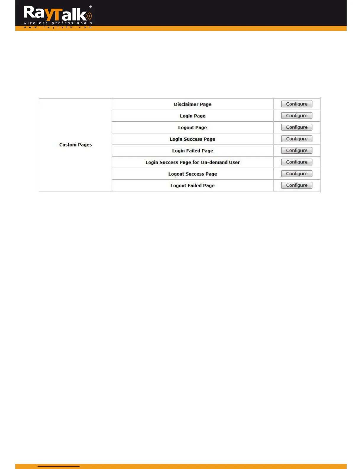 ClickConfigure,thesetuppagewillappear.Anunauthorizedclientwillreceiveadisclaimerpageonceopeningthewebbrowser.