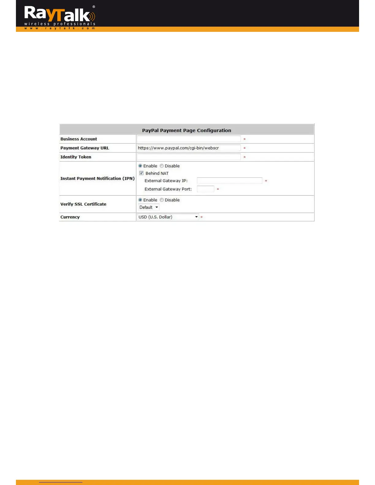 theIPNmessagefromPayPal.Thisis a mandatoryconfigurationitem if theWANIPof yourga