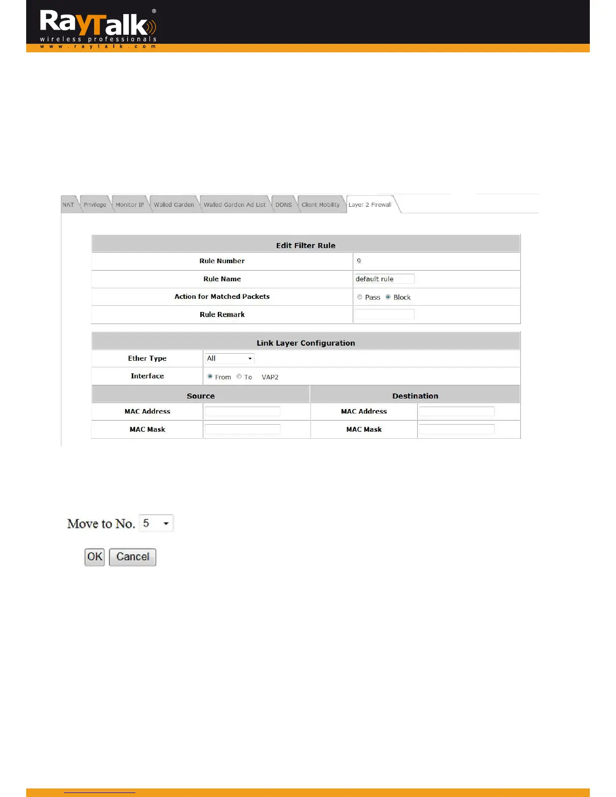 InsertingBeforeinOperationcolumnof firewalllistwillleadtothefollowingpagefordetailedconfiguration witharuleIDfor