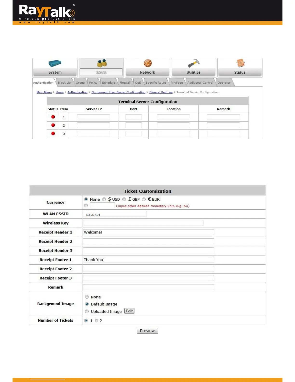 TerminalServer:Term inalServerConfigurationisalistofserial‐to‐Ethernetdevicesthatcommunicatewiththesystem