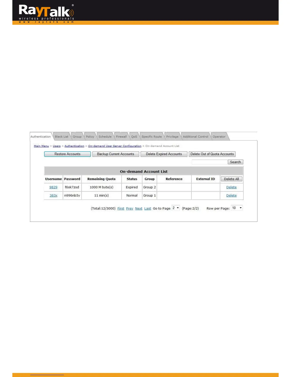 TheQuickButtonlocatedonthefrontpanelofRAYTALKRA696isaquickOn‐demandaccountgenerationbutton.Thisbuttonis