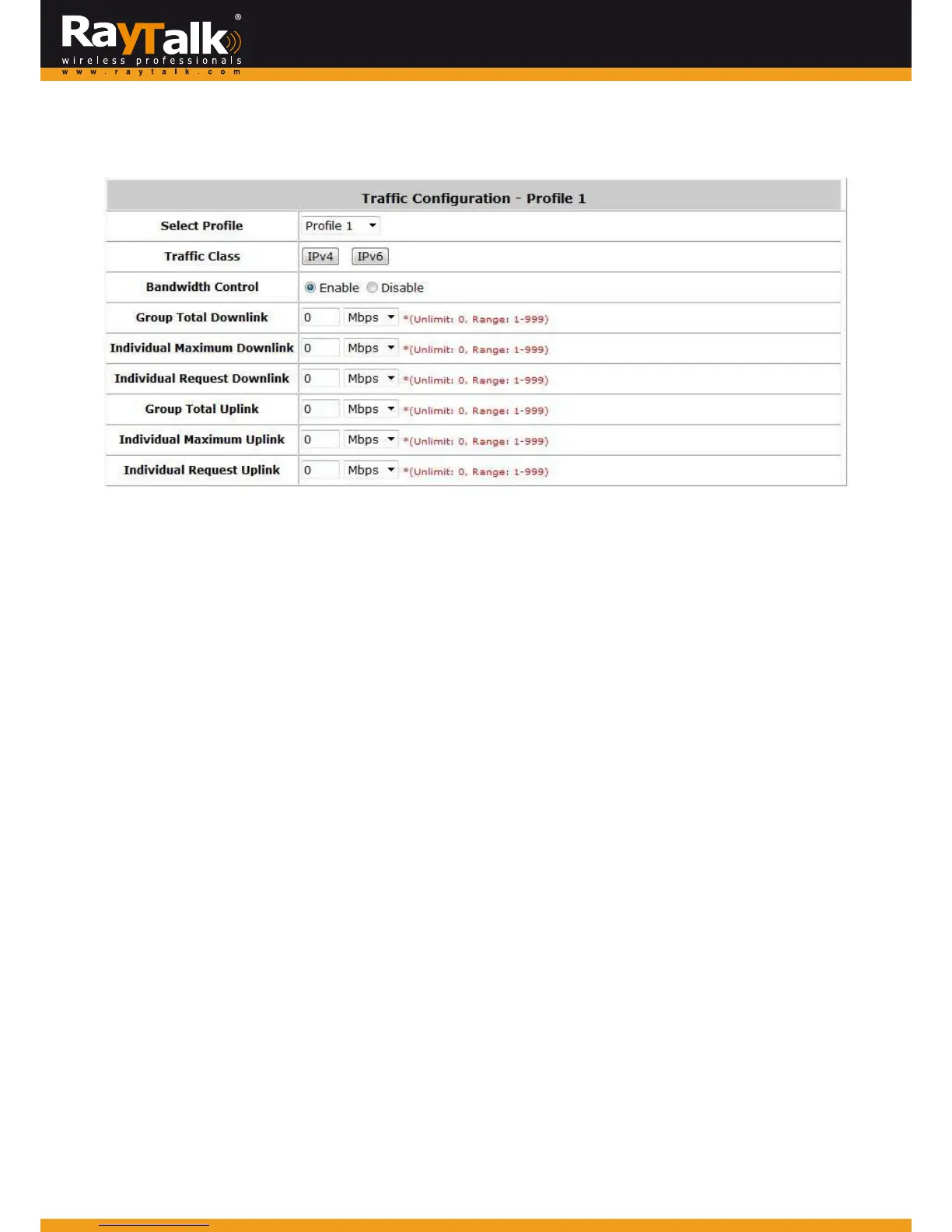 > Individual Maximum Downlink: Defines the maximum downlink bandwidth allowed for an i
