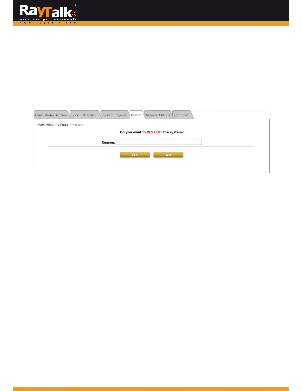 ThisfunctionallowstheadministratortosafelyrestarttheRAYTA LKRA‐696,andtheprocesstakesapproximatelythreeminutes.