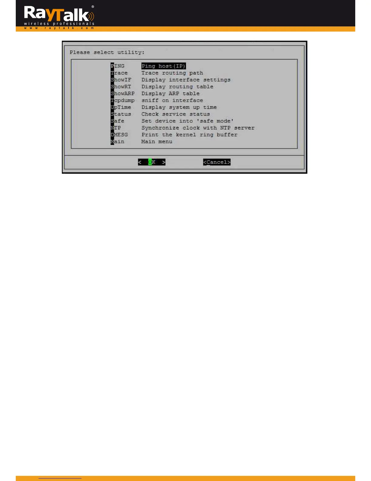 Displaytherouting table: Theinternalrouting table of the system is displayed,whichmay help to confirmthe