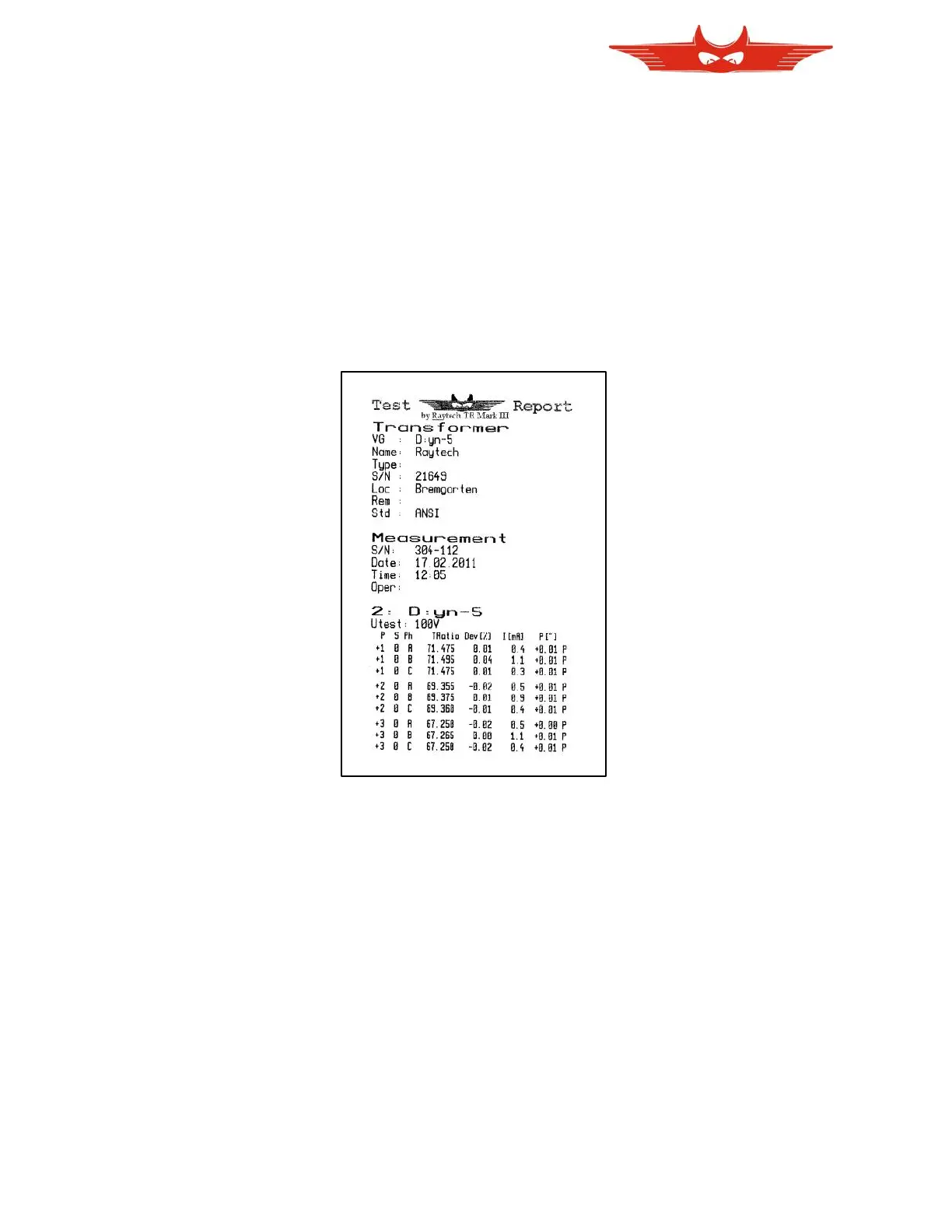 Please see chapter ‘8.1.2.3 ‘Tuns Ratio or Voltage Ratio, Print or Save’ about how to print.