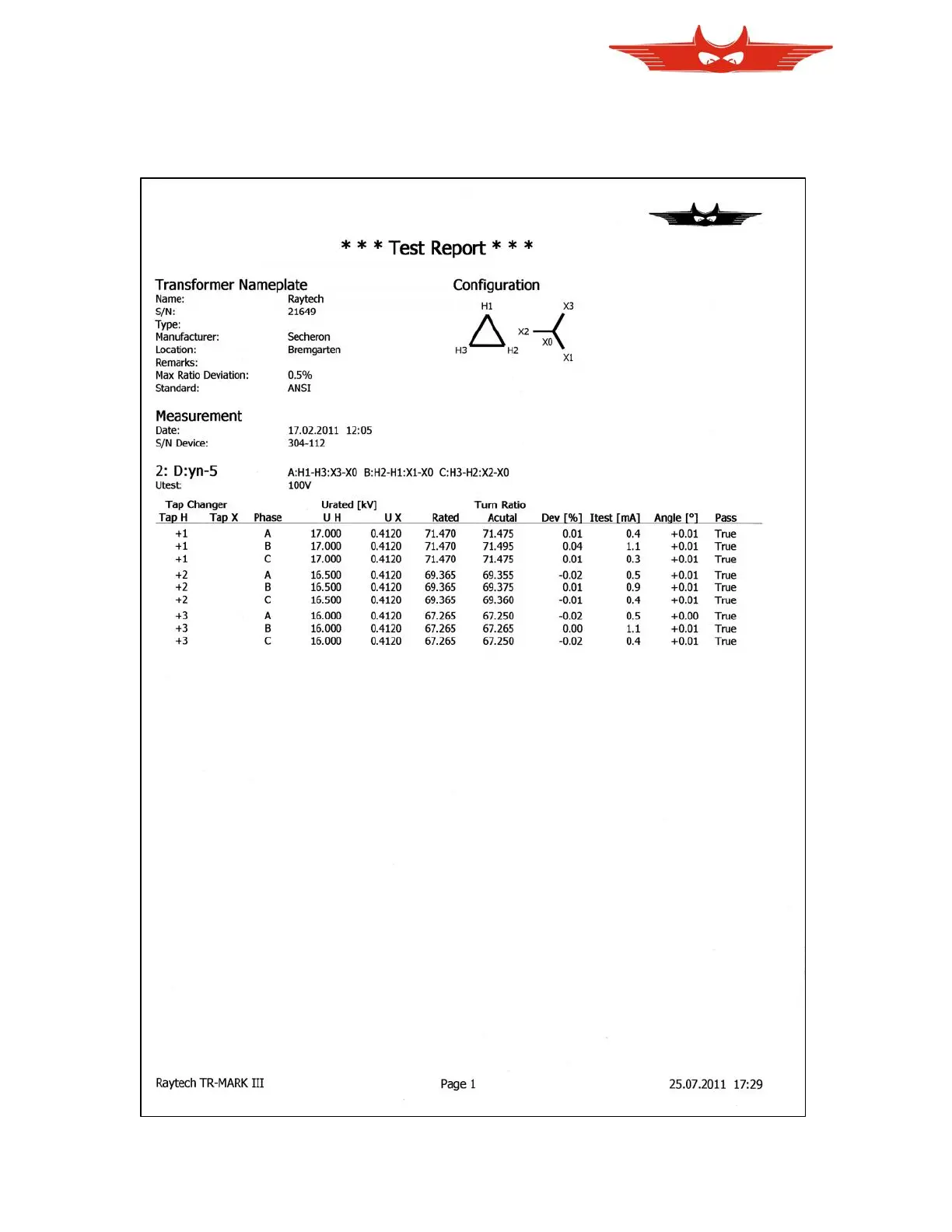 Raytech TR–Mark III 250V - External Printer Test Reports; External Printer Report Format