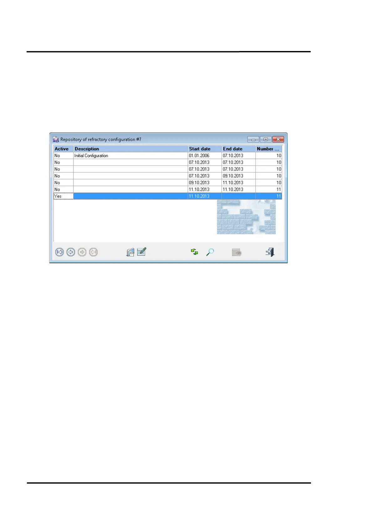 Figure 101: <Current Configuration> Tab of the Refractory Management Dialog