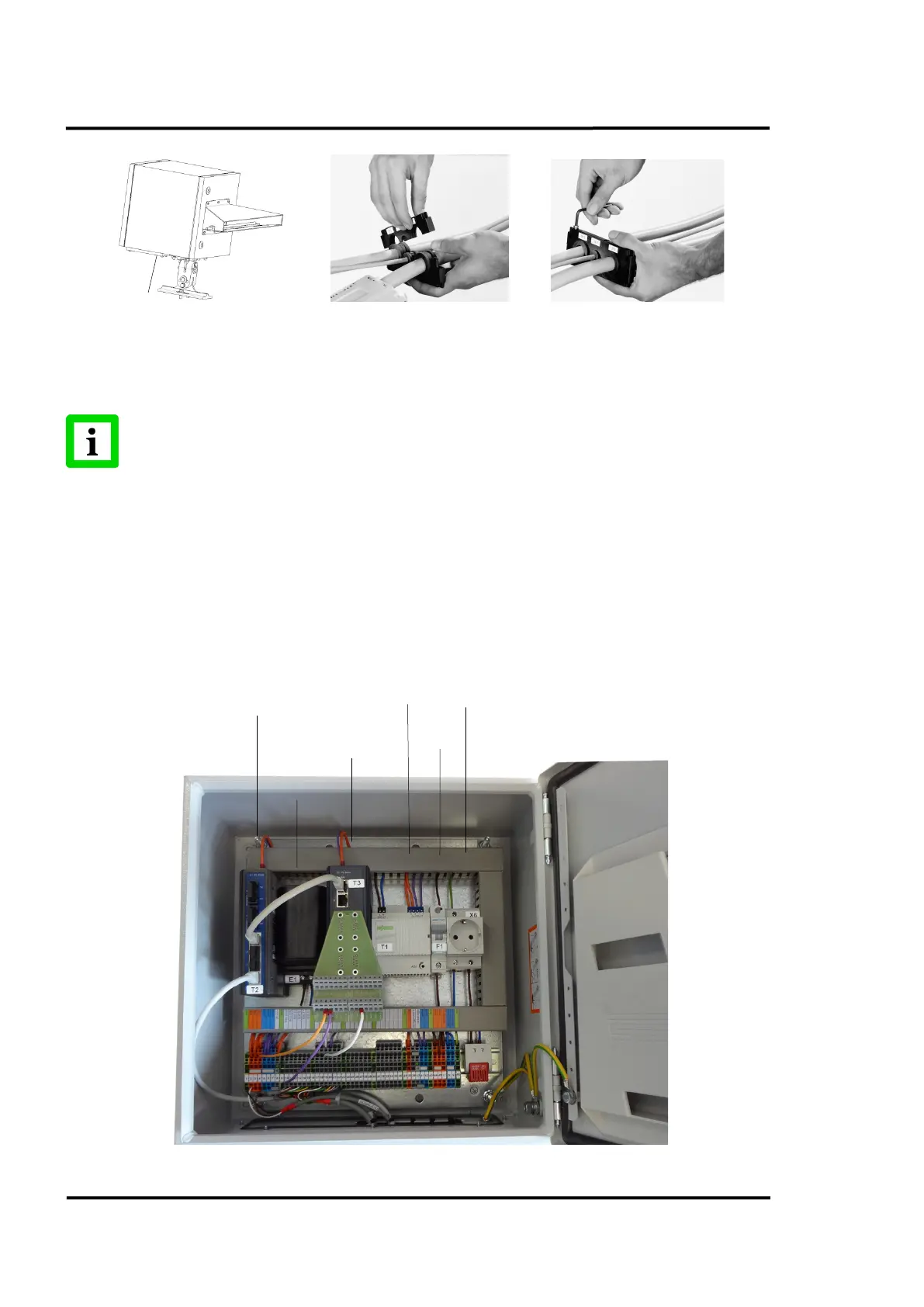 Using the 4 M5x25 screws, mount the grommet plate on the outside of the protective housing. Plug