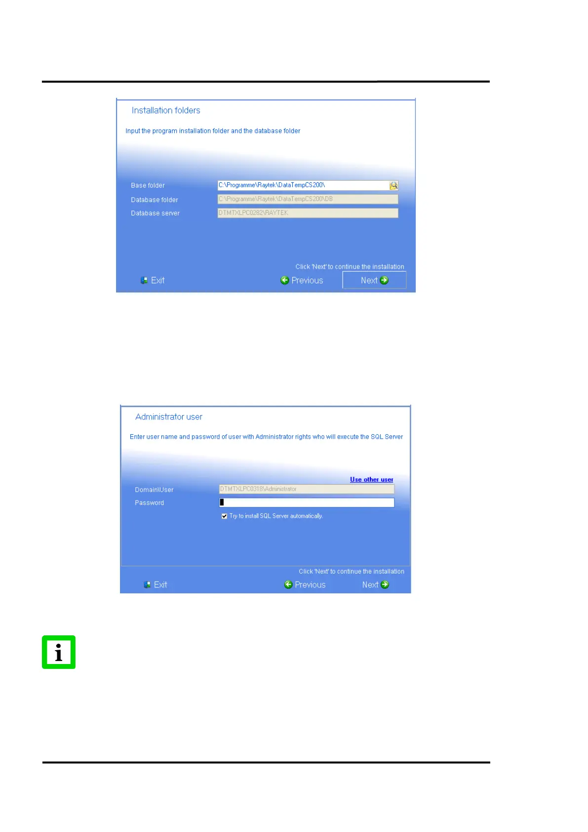 • In one of the next screens, you have to give a valid <user name> and <password> for an