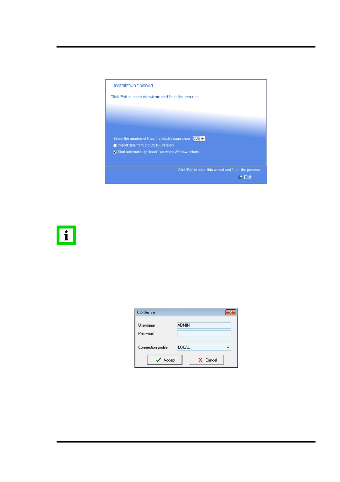 Predetermined user for CS Config (valid also for the program components CS Deneb and ReadScan):