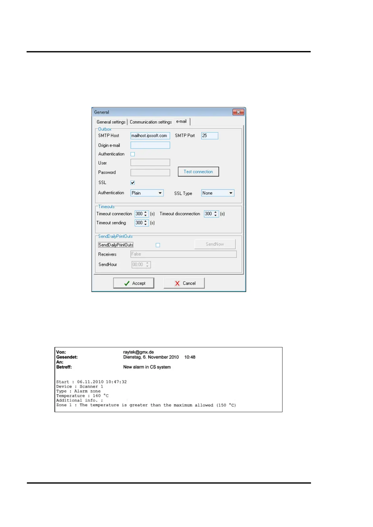 To configure the email address for the recipient see section 6.2.14.2.1 <General> Tab, page 53.