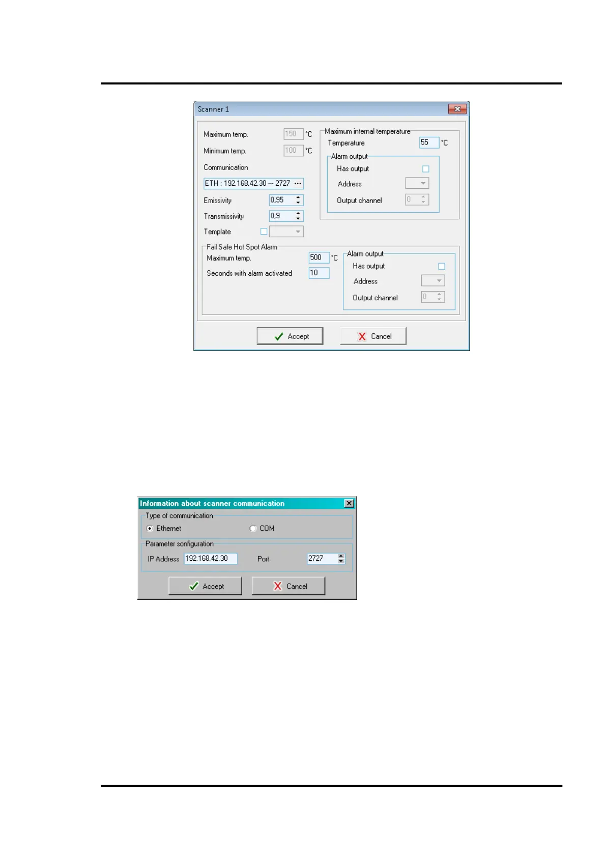 • Communication parameters for the scanner: