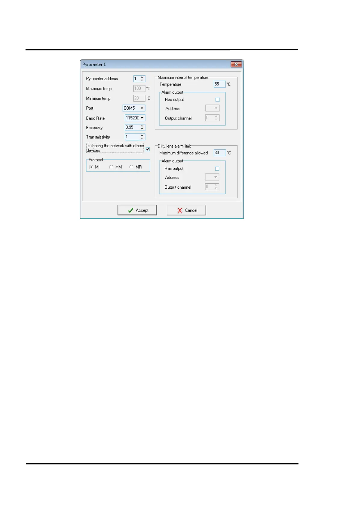 For pyrometers you can define if it shares network with other pyrometers or not. When sharing the