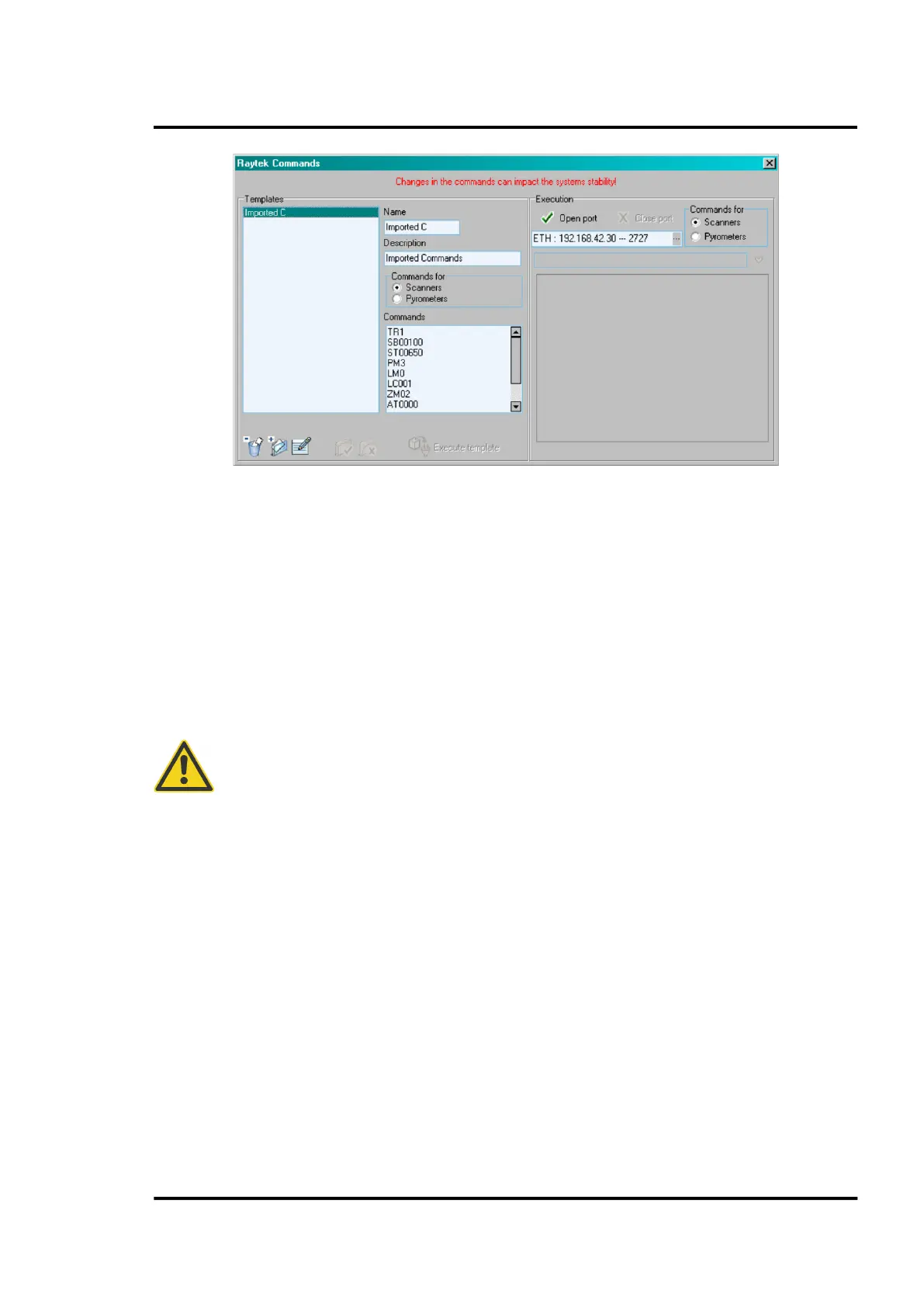 Figure 28: Window of Raytek Commands