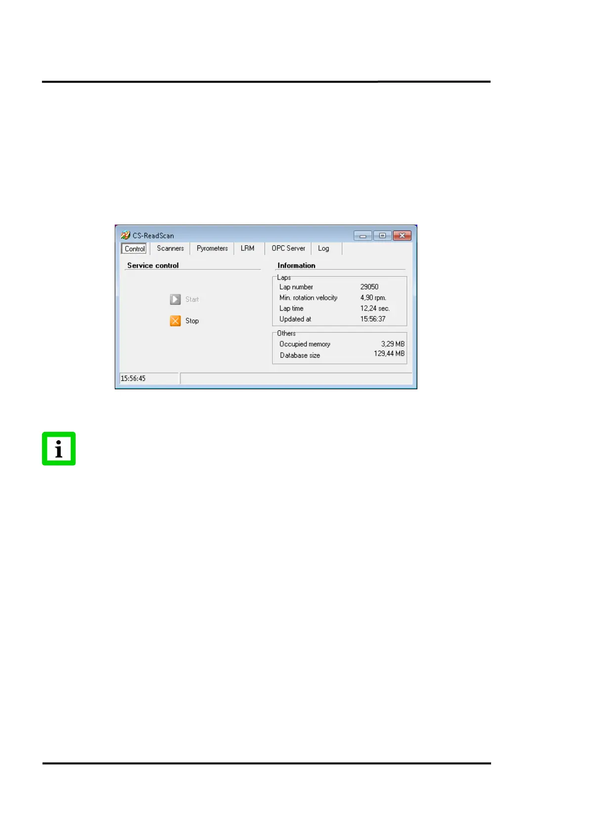 It also shows the number of laps registered by the system from the service start up, the rotation