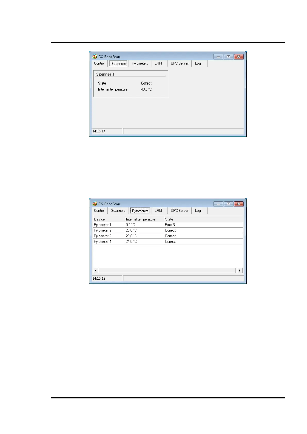 This tab shows information on the pyrometers configured to work with the system. If no pyrometer is