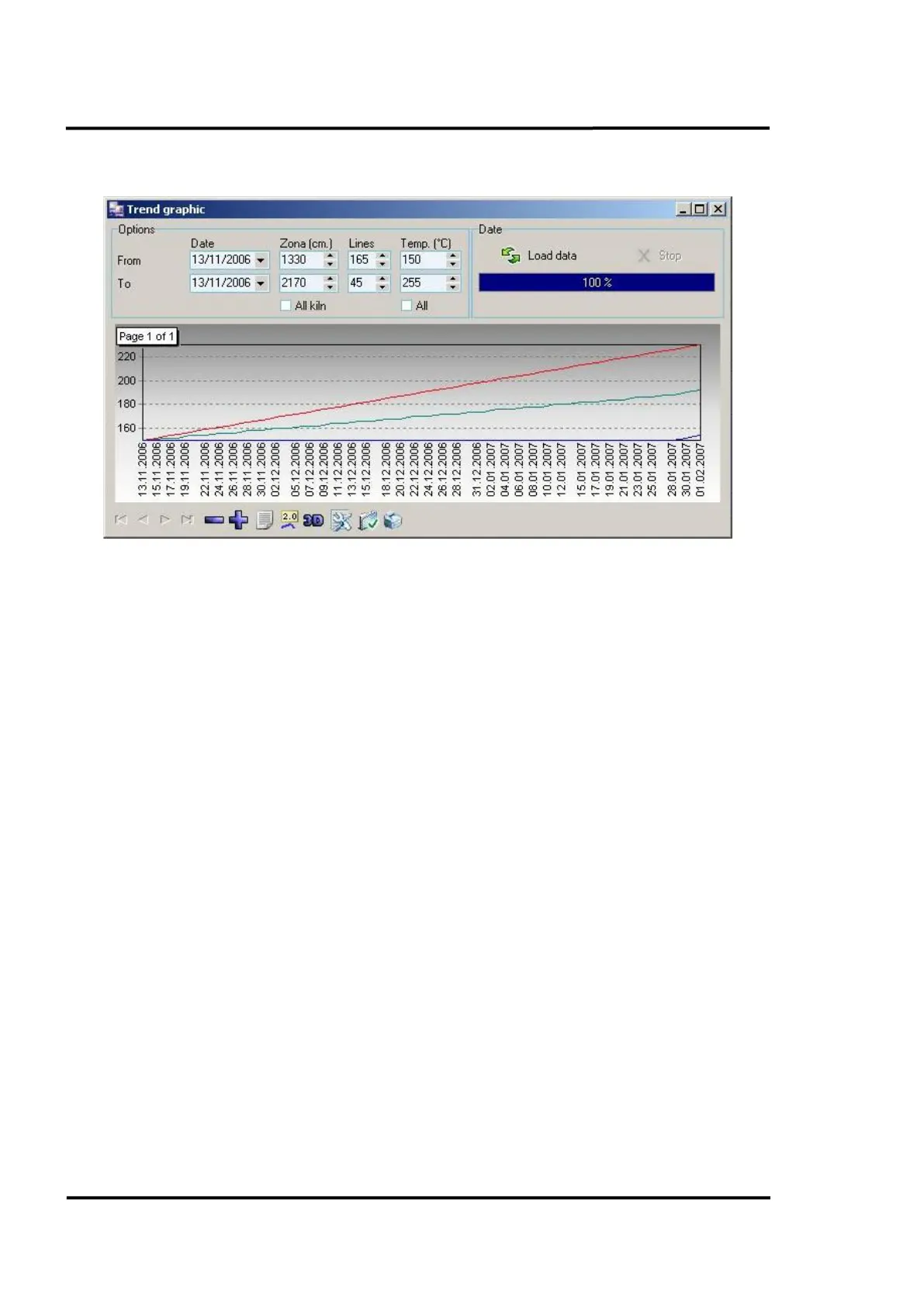 This chart displays the same data as the histogram but in a line chart format. The lines are colour