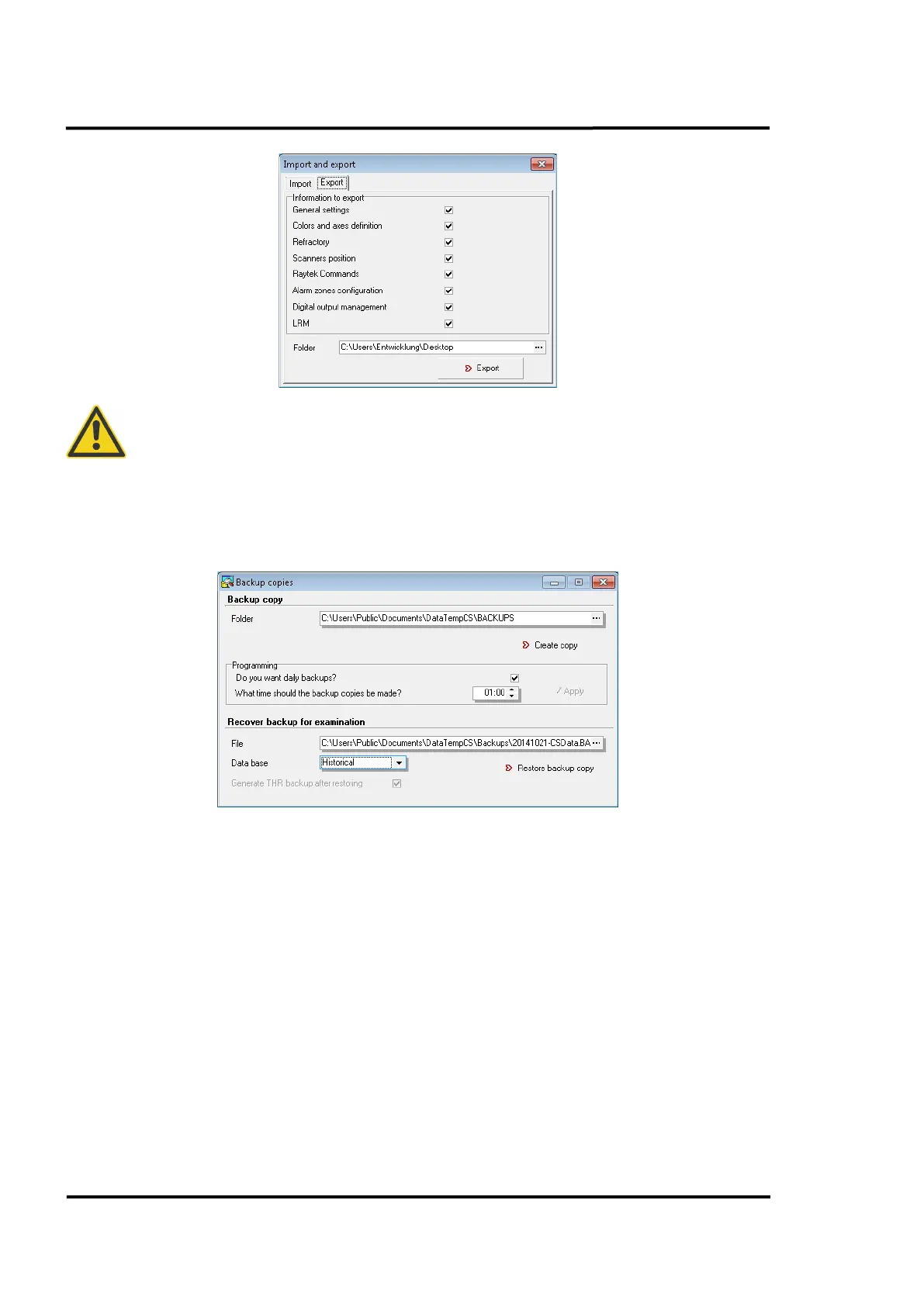 The folder entered for the backup copy must not be edited, removed or deleted since ReadScan must