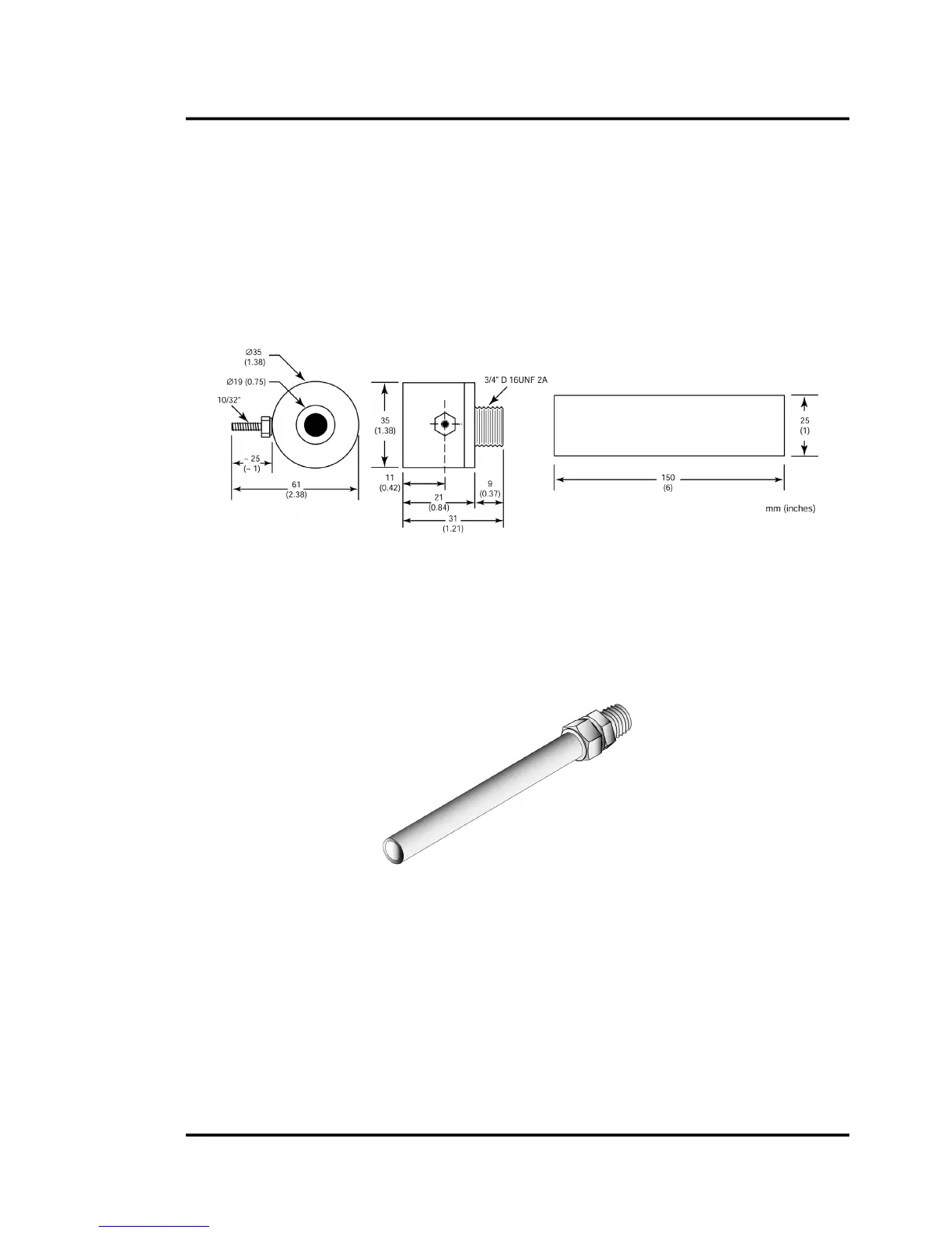 The protection tube is available as an accessory. It is305 mm (12 in.) long and 32 mm (1.26 in.) in