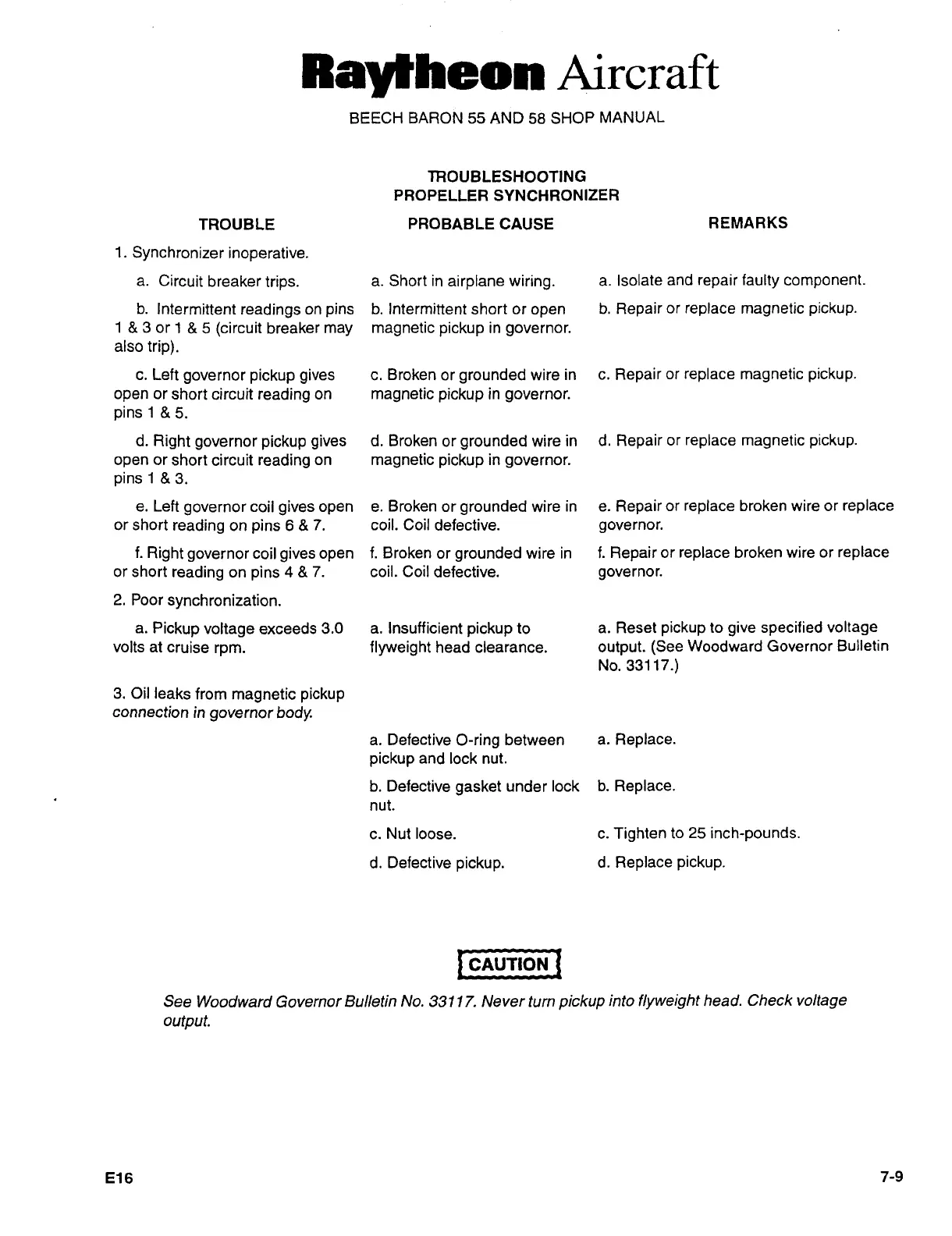 Raytheon Beech Baron D55 - Troubleshooting Propeller Synchronizer