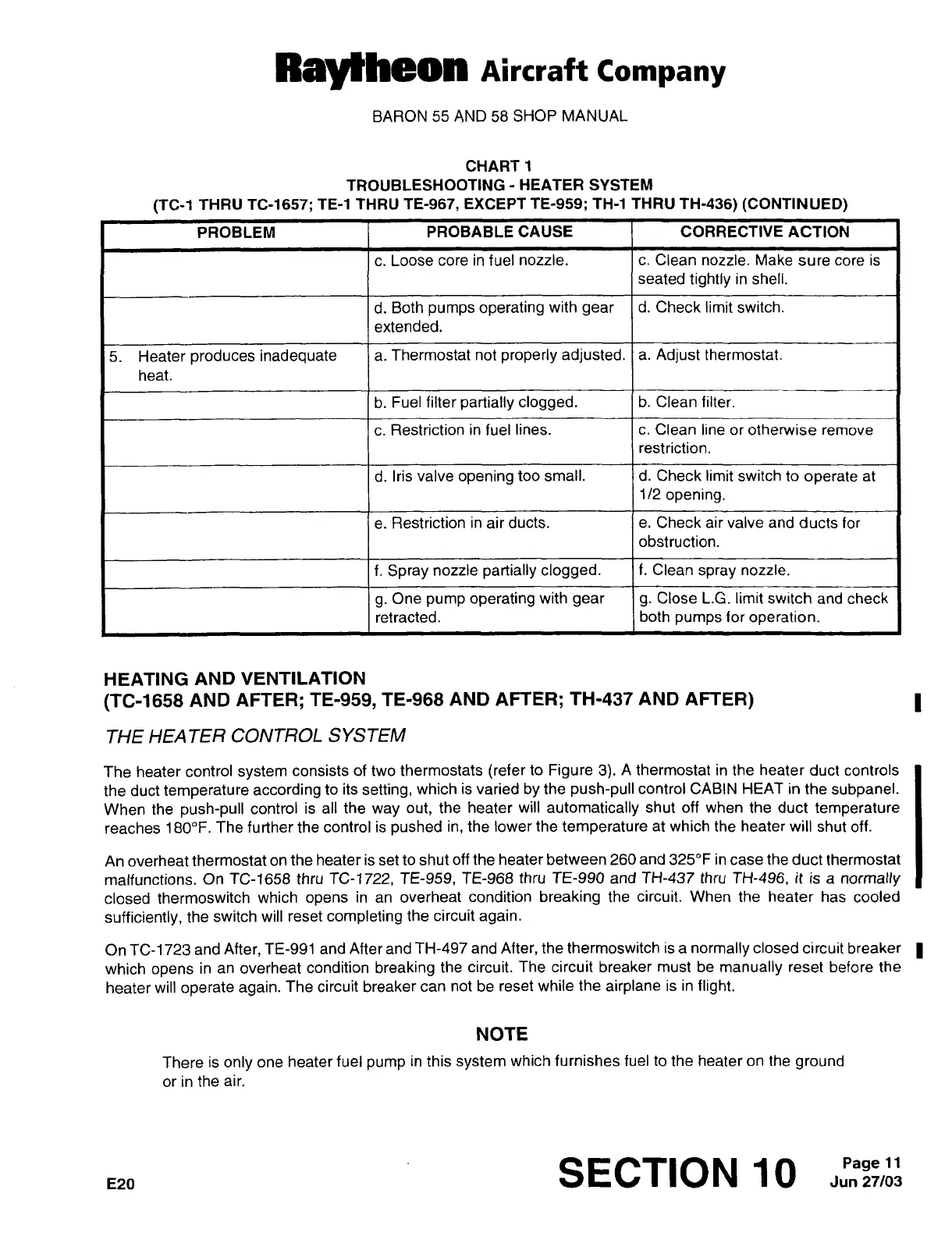 Raytheon Beech Baron D55 - Heating & Ventilation (TC-1658 & After, TE-959