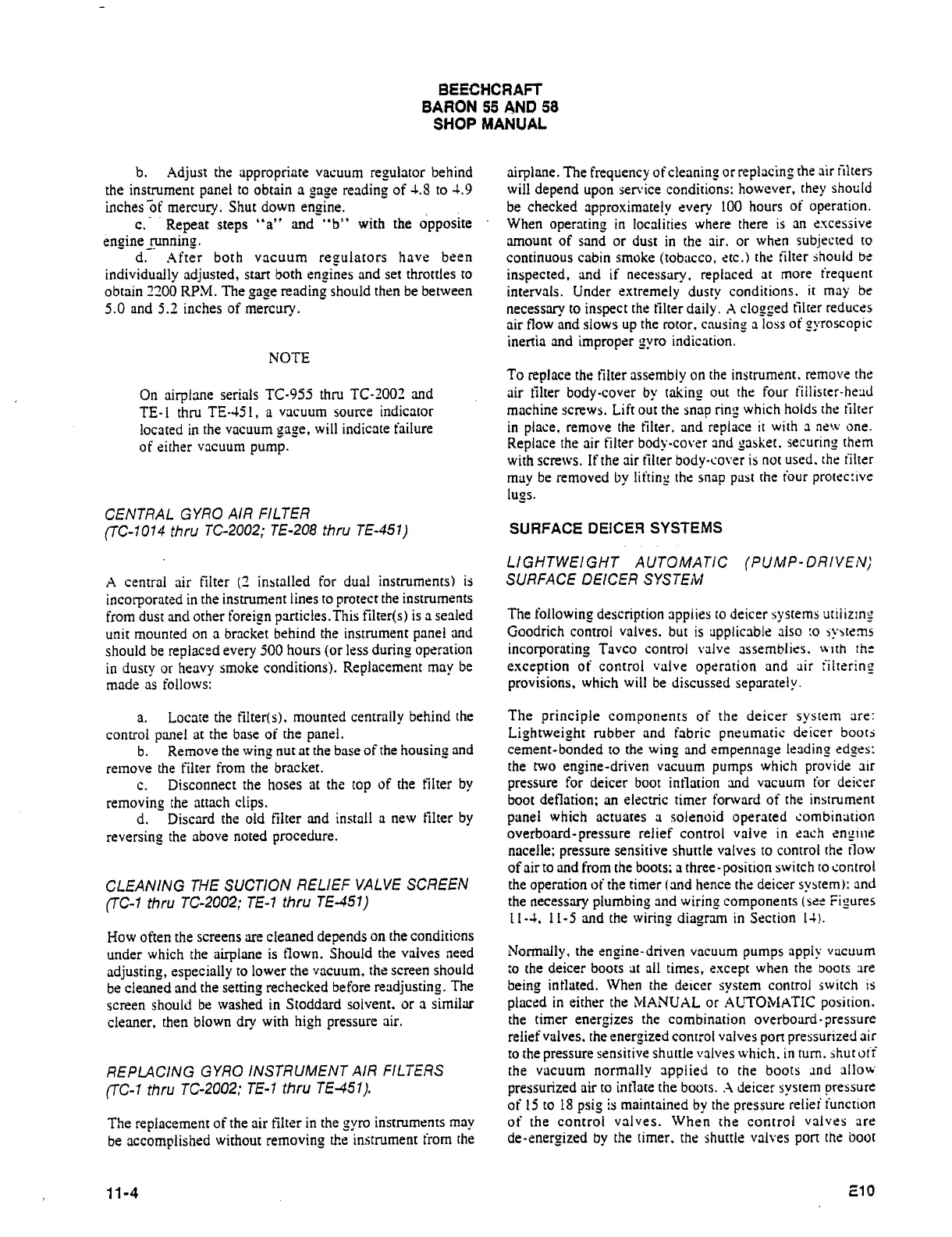 Raytheon Beech Baron D55 - Surface Deicer Systems