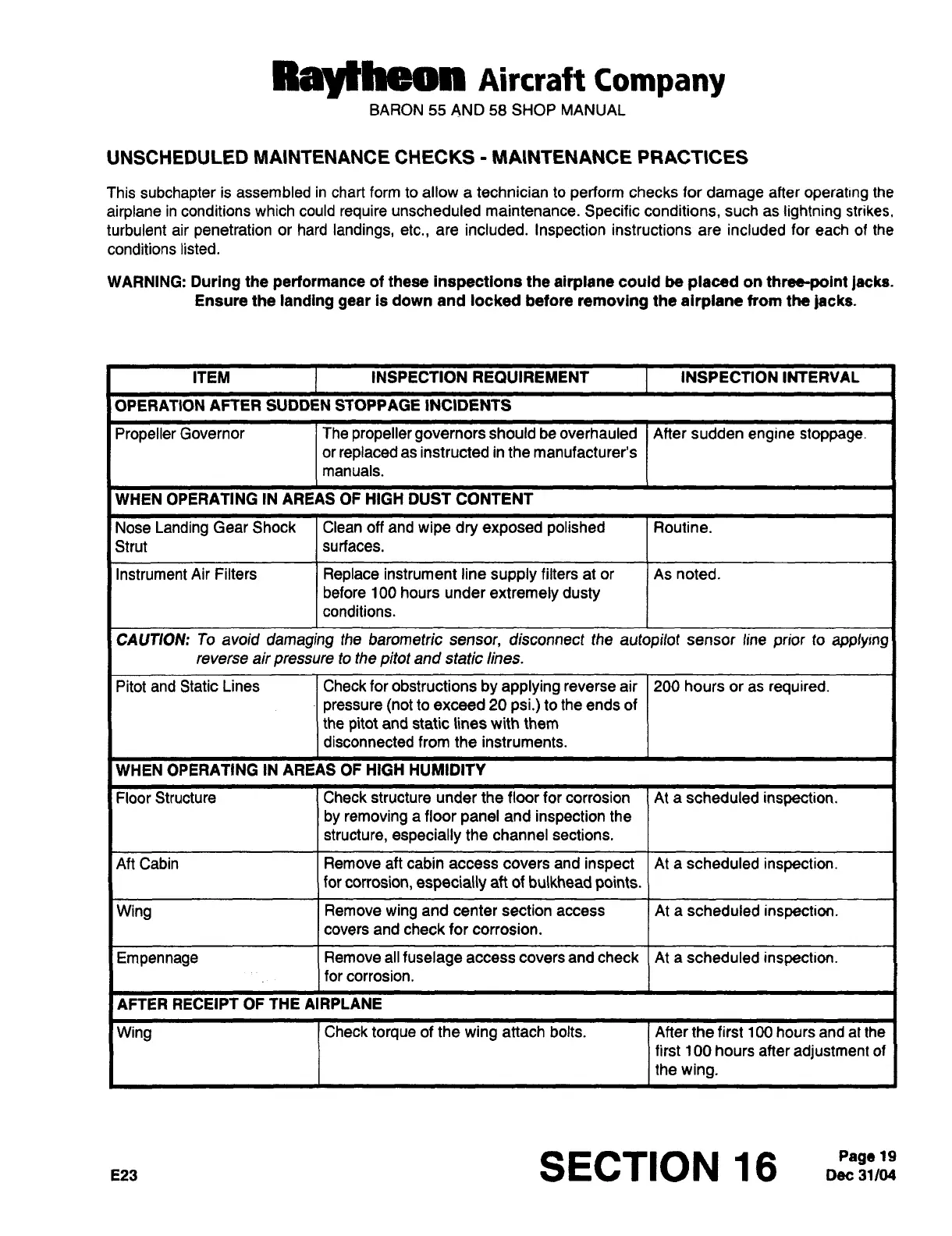Raytheon Beech Baron D55 - Unscheduled Maintenance Checks