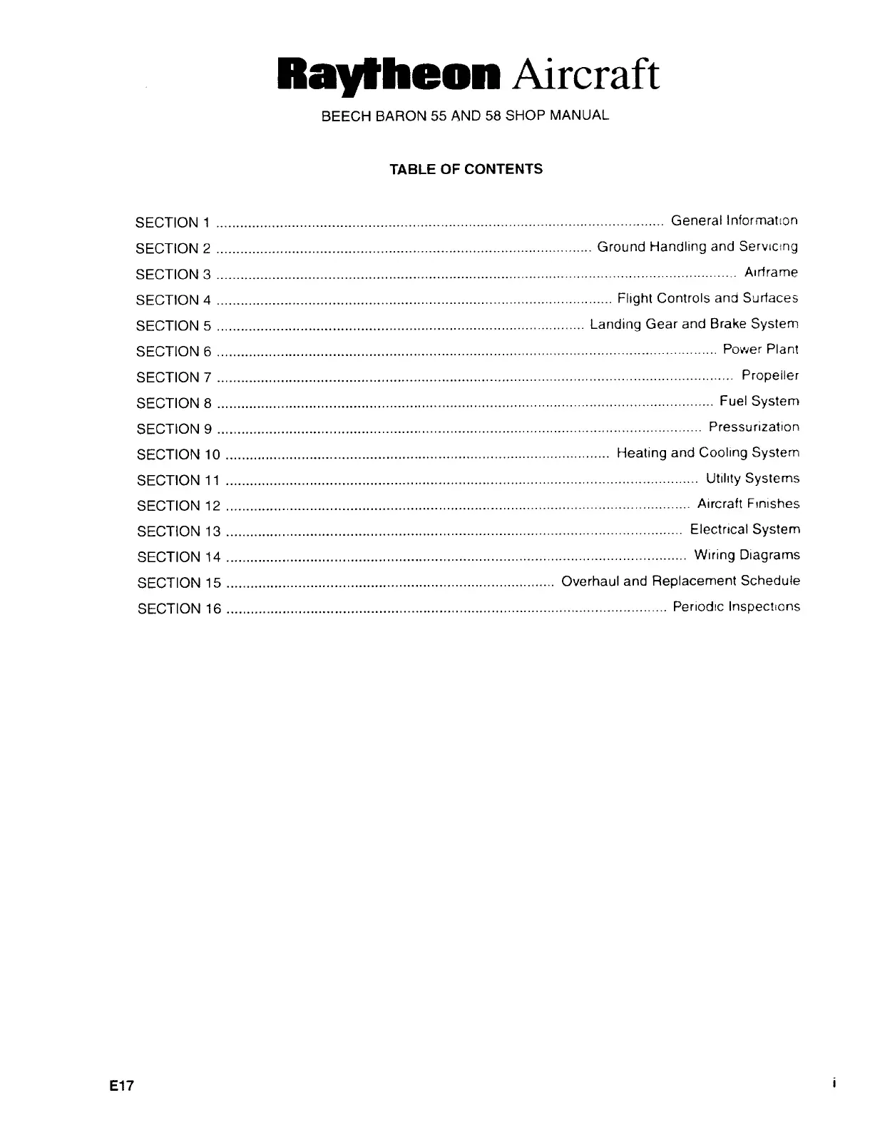 Raytheon Beech Baron E55 - List of Chapters (Table of Contents)