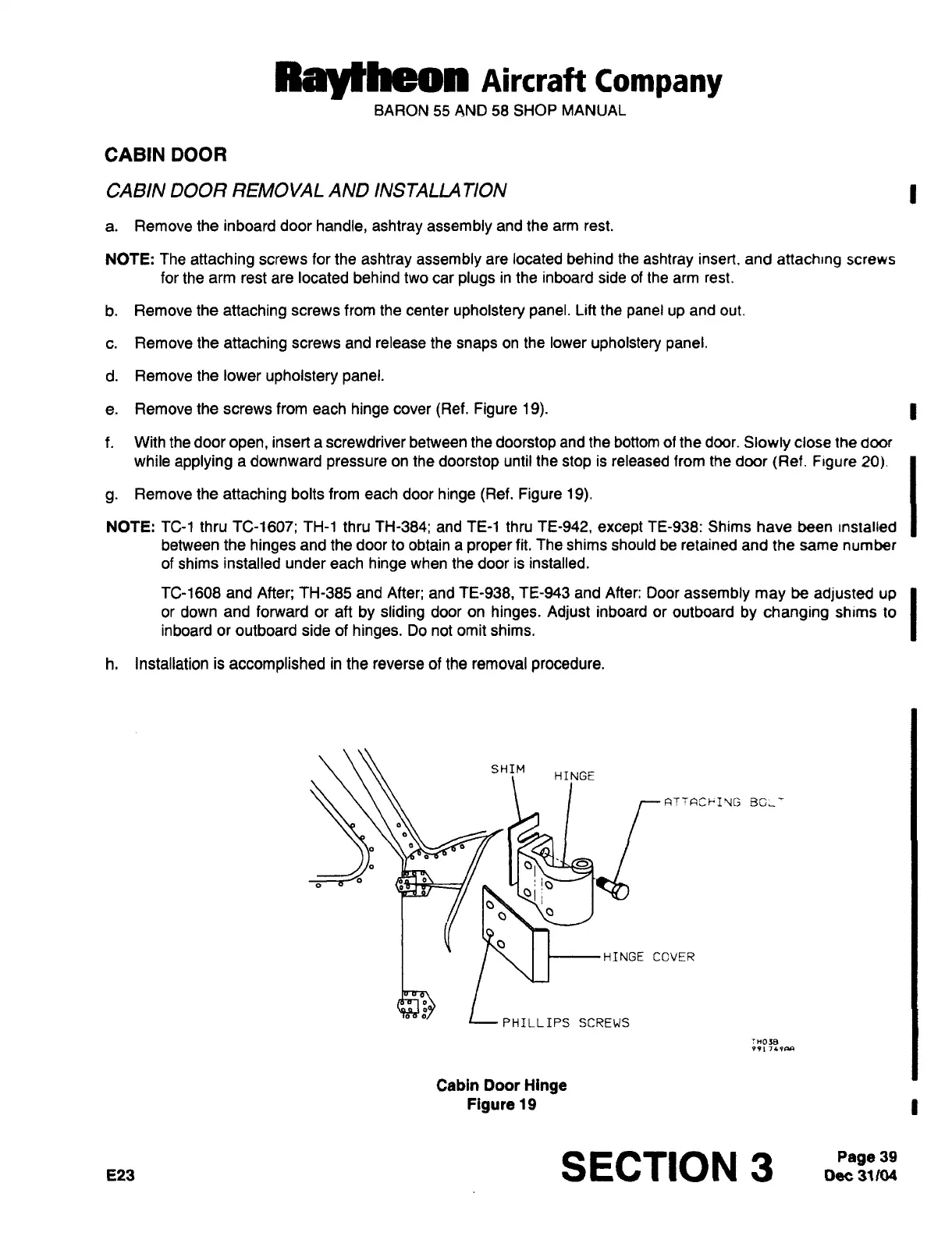 Raytheon Beech Baron E55 - Cabin Door