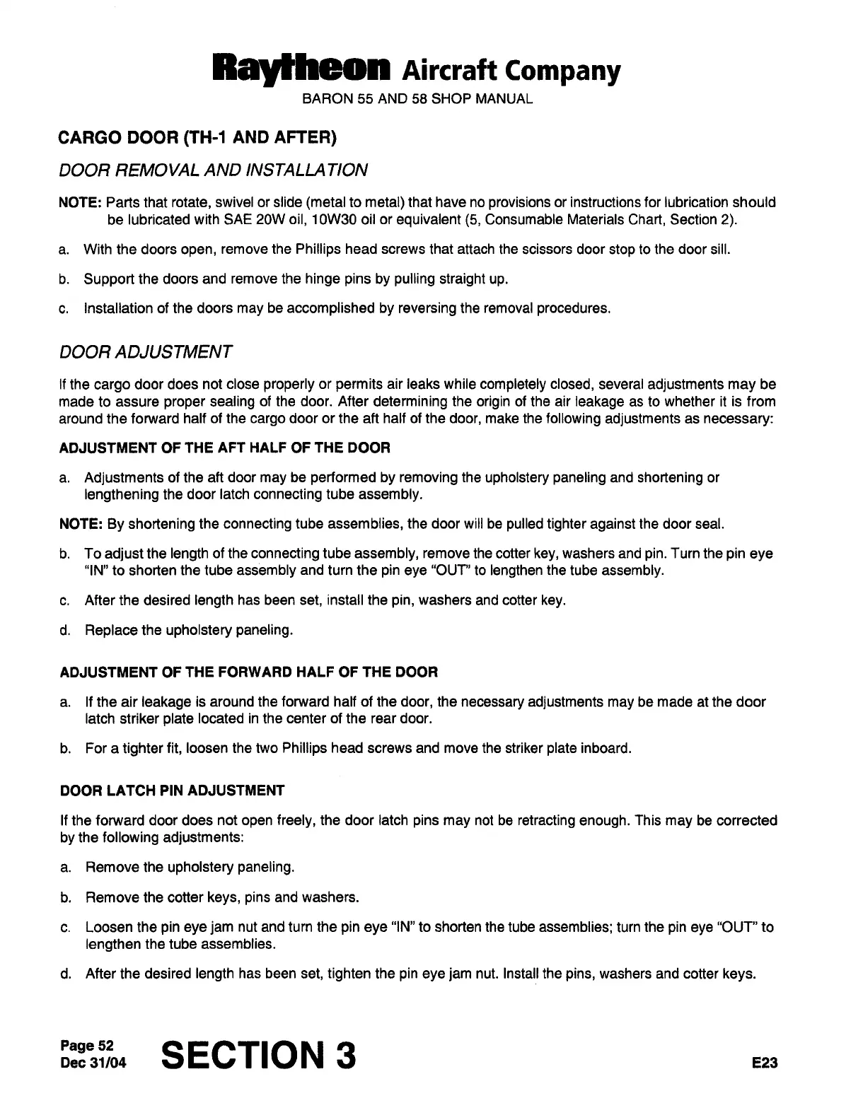 Raytheon Beech Baron E55 - Cargo Door (TH-1 and After)