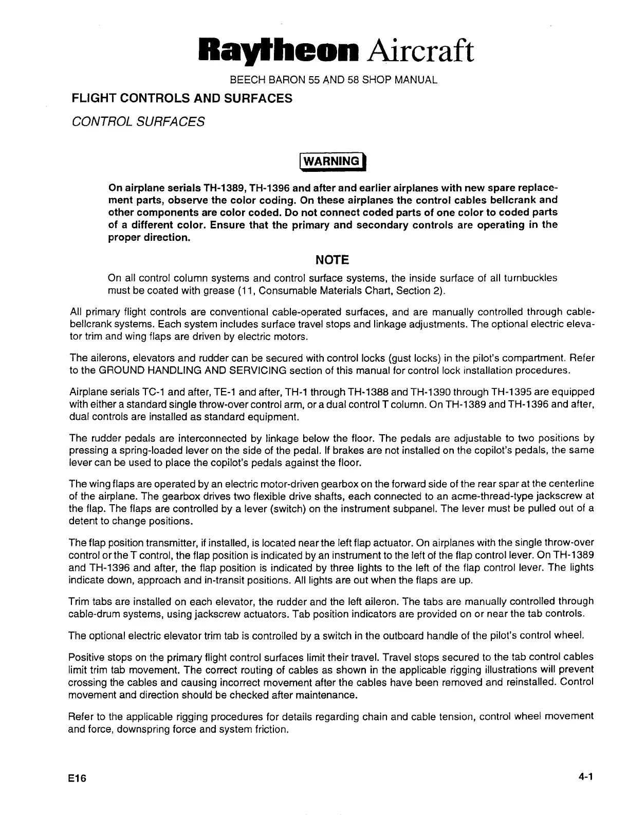 Raytheon Beech Baron E55 - Flight Controls