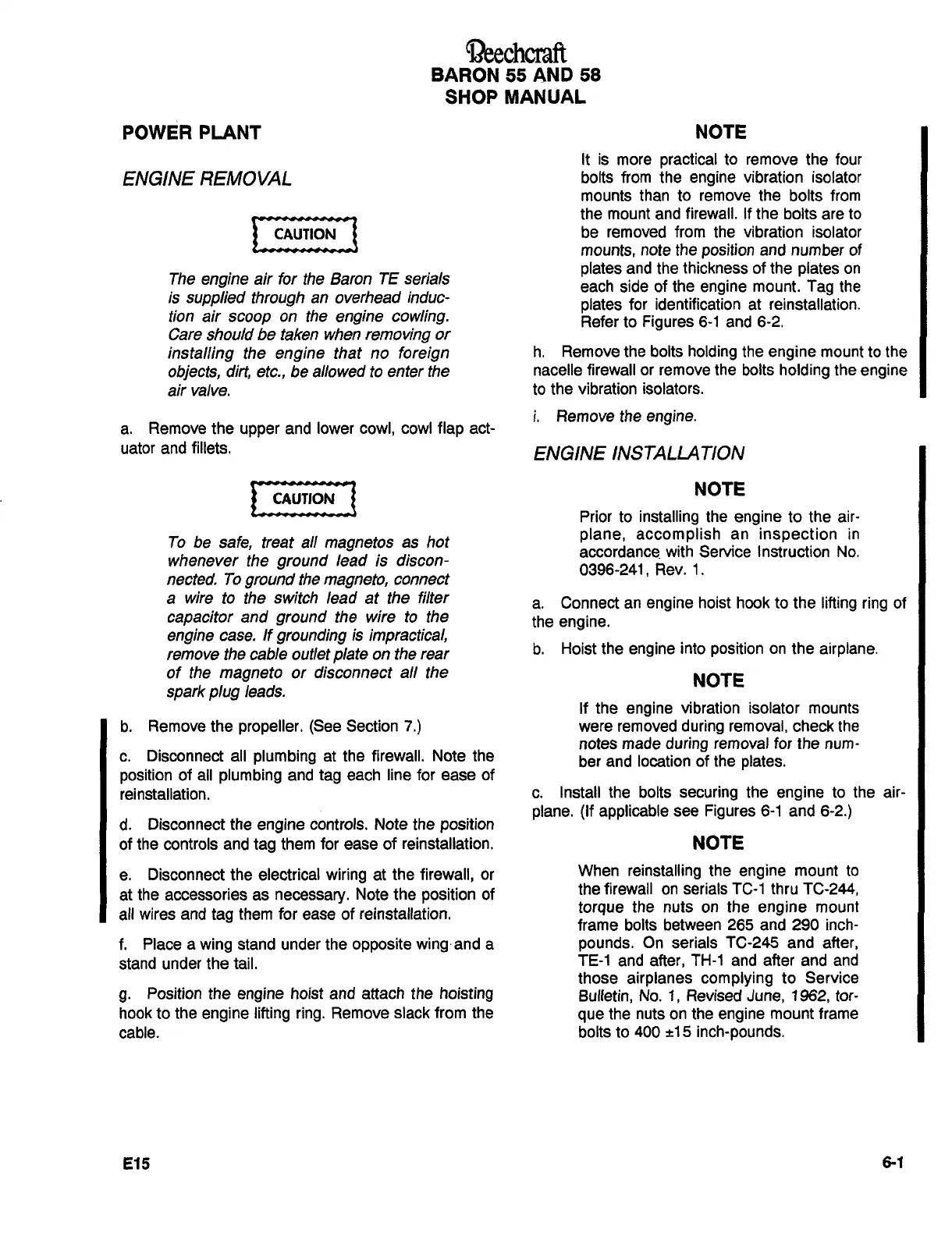 Raytheon Beech Baron E55 - Power Plant